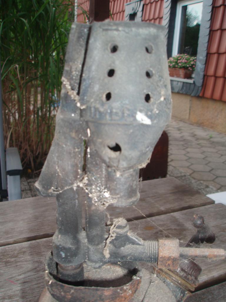 Es ist schon sehr merkwürdig das der Brenner dieser Lampe nur 20 mm Durchmesser hat und auch die ganze Lampe etwas kleiner und runder" ausfällt (der Brenner-Durchmesser der originalen zum Bulldog gehörenden Heizlampe beträgt ca. 24- 25 mm, ist ja auch passend zum Imbert-Modell 26.