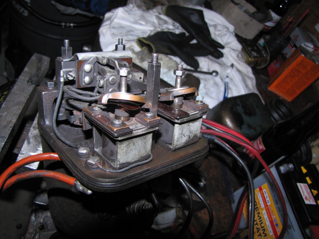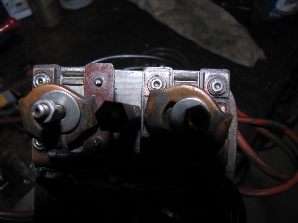 Bei mir sind die Relaiskontakte, die bei der oben gezeigten Ausführung geschraubt sind, angenietet. Und bei einem Kontakt muß es richtig heißen: "gewesen". Dort fehlt der komplette Nietkopf, ist wohl mal zu warm geworden (Alu...).