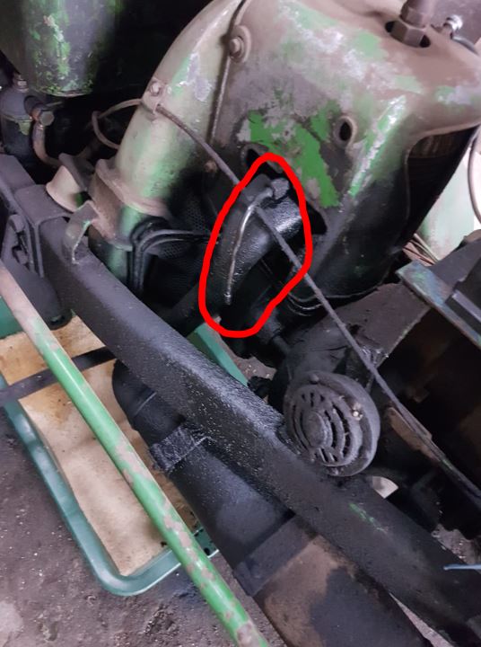 Die Leitung über dem Abgaskrümmer in dem roten Kreis gehört zu einer genialen Ölabscheidung im Zylinder.