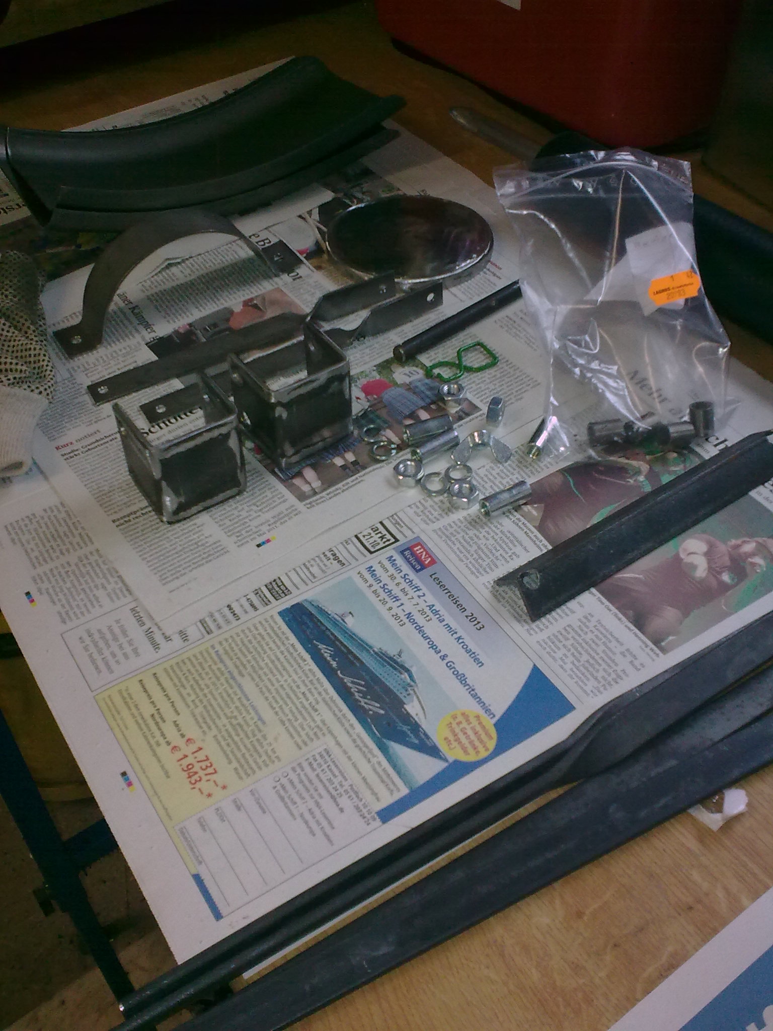 Am Mittwoch habe ich beide Hinterradkotflügel lackiert. Während diese in der Lackierabteilung trocknen kümmere ich mich um Teile, die beim Kauf nicht mehr dabei waren oder defekt.