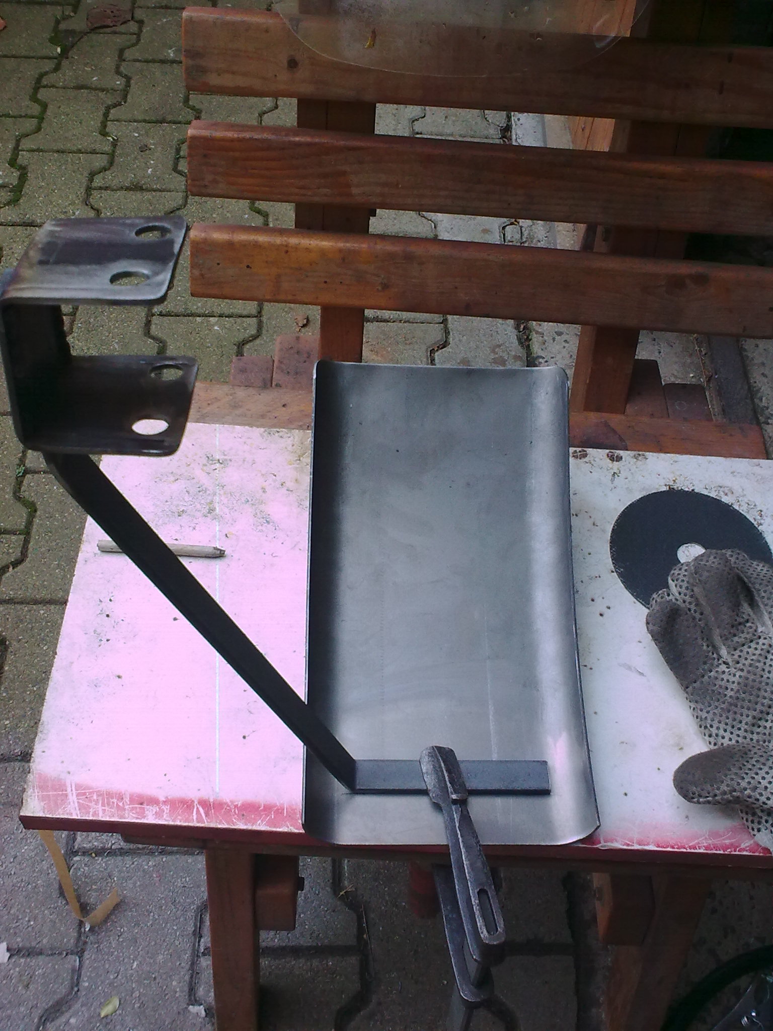 Hier der augenblickliche Stand, eines der beiden Versteifungsbleche in der Motorhaube:
