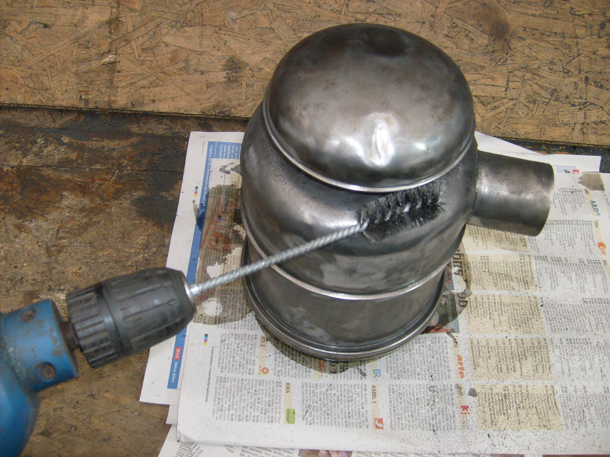Beim Luftfilter ist es immer schwierig den Bereich unter dem Ansaugpilz zu reinigen. Mit dieser Art Drahtbürste auf der Bohrmaschine geht es sehr gut: