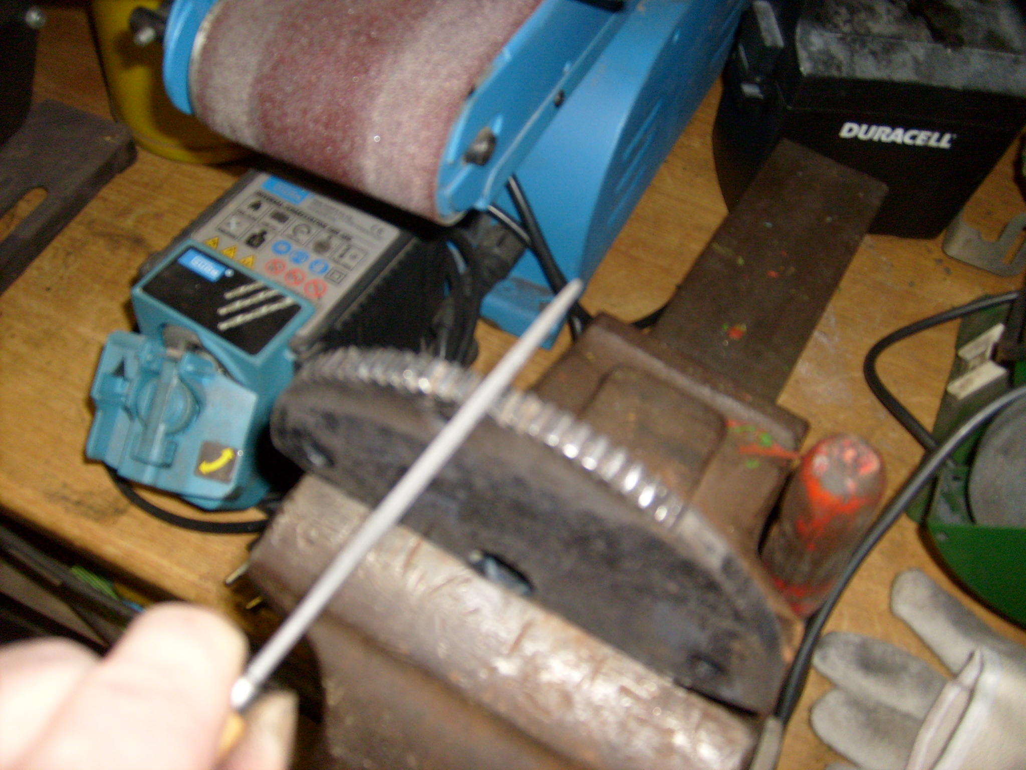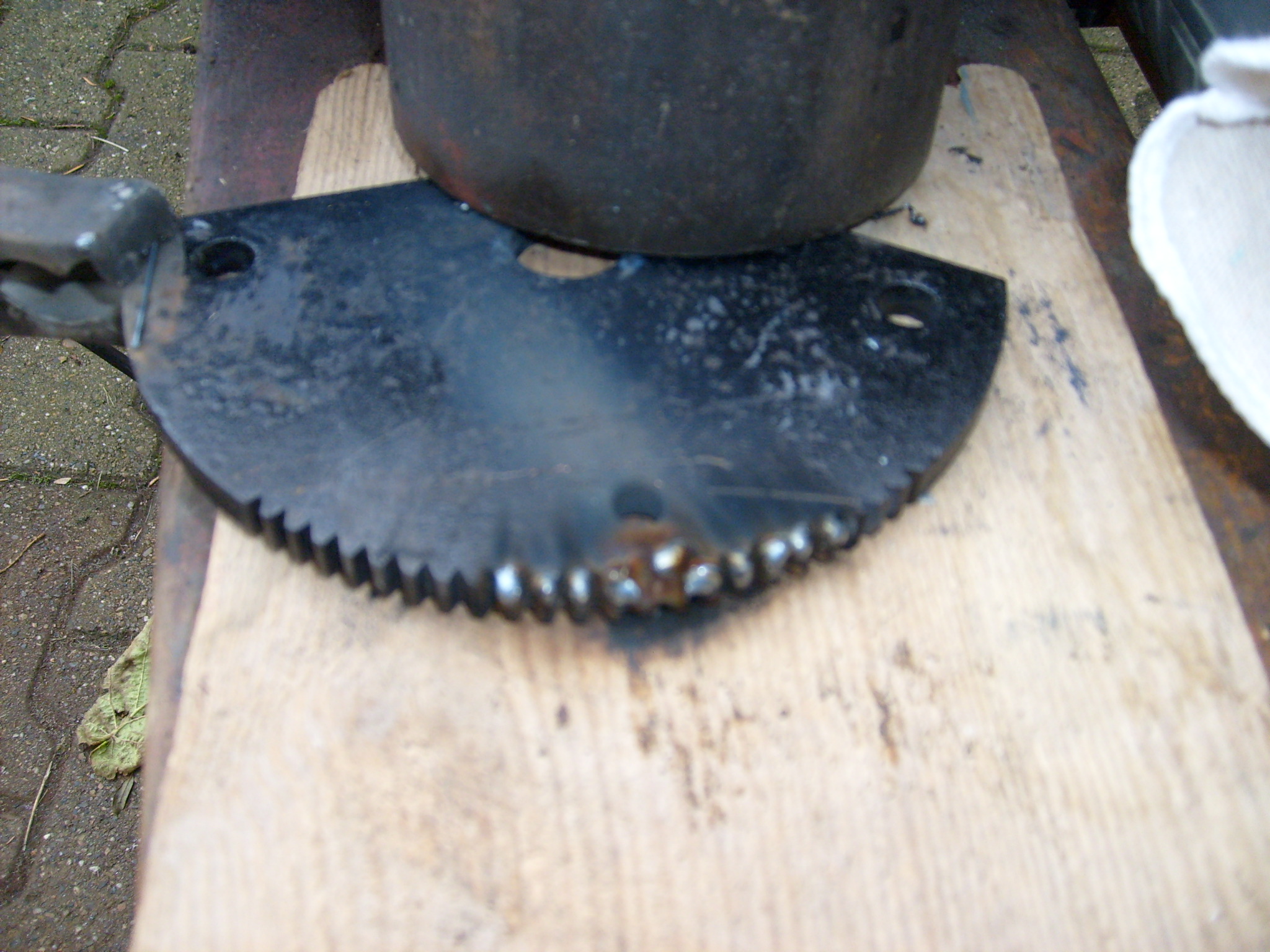 Nun wurde die entsprechende Stelle aufgeschweißt. Dabei auch gleich einige andere Zähne, wo seitlich etwas ausgebrochen oder abgenutzt war.