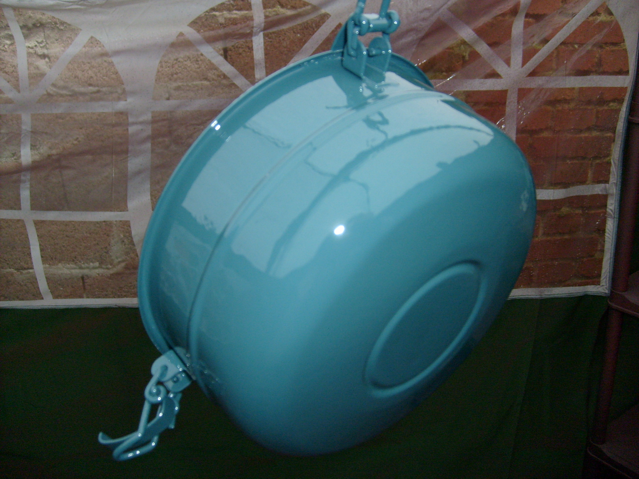. Dann die Frage wie man sowas vernünftig in einen Schraubstock einspannt? Die Rückseite, die an dem Amarturenbrett angeschraubt ist, konnte mit Schraubstock und Hammer gerade geklopft werden. Die Verbiegungen waren so stark, dass die gepunkteten Teile teilweise auseinaderissen. Diese mußten dann, um die Gesamtstabilität zu wahren, vor dem nächsten Arbeitsgang erst wieder zusammengeschweißt werden. Wir haben die Schweißpunkte aber nicht extra aufgebohrt sondern die Kanten angepunktet. Quasie so, wie man es auch in einer Lama- Werkstatt macht und gemacht hätte. Um die Tankrundung vorne wieder hin zu bekommen mußten die 90 Grad Verstärkungen abgeschnitten werden. Den Tank haben wir mit seiner unverbeulten Seite in die Halterung gelegt und zur Vereinfachung der Richtarbeiten an der Werkzeugiste angepunktet. Nicht die feine englische Art, aber sehr hilfreich, auch was die anstehenden Arbeiten am Tank angeht. Aber auch die abgeschnittenen Verstärkungen machten es noch nicht möglich die Tankrundung wieder hinzubekommen ohne Gefahr zu laufen, die recht dünne 0,8mm Tankwandung einzudrücken. Denn, wie man weis, der Klügere gibt nach.