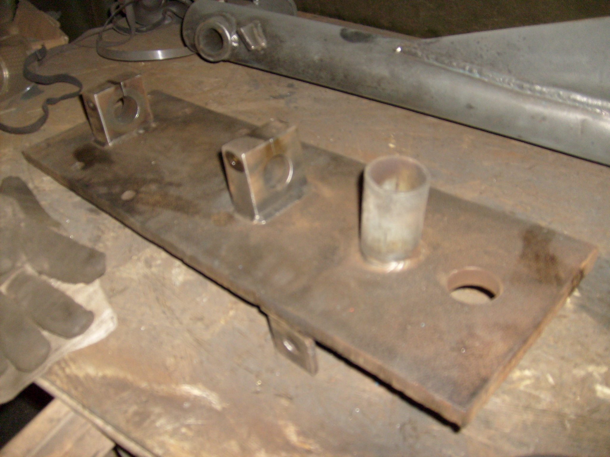 Die beiden Aufnahmeböcke des Mittelachsbolzen sind übrigens sehr sauber und ordentlich verschweißt! Die beiden Aufnahmeböcke selbst sehen auch nicht aus, als ob das Jemand mal so eben nebenbei aus einer Stahlplatte mit Flex, Säge oder Schweißbrenner gefertigt hätte, zumal ja der Schlitz mit den Spannschrauben und dem Achsbolzen harmonieren muss, also eben nicht, paßt, wackelt und hat Luft... :lol: Ob da doch die Profis von Lanz beteiligt waren? Möglicherweise eine nur zu speziellen Testzwecken angefertigte, exrta stabile Ausführung der Vorderachsaufnahme, um andere Komponenten des Schleppers sicher testen zu können? Spannend! 8)
