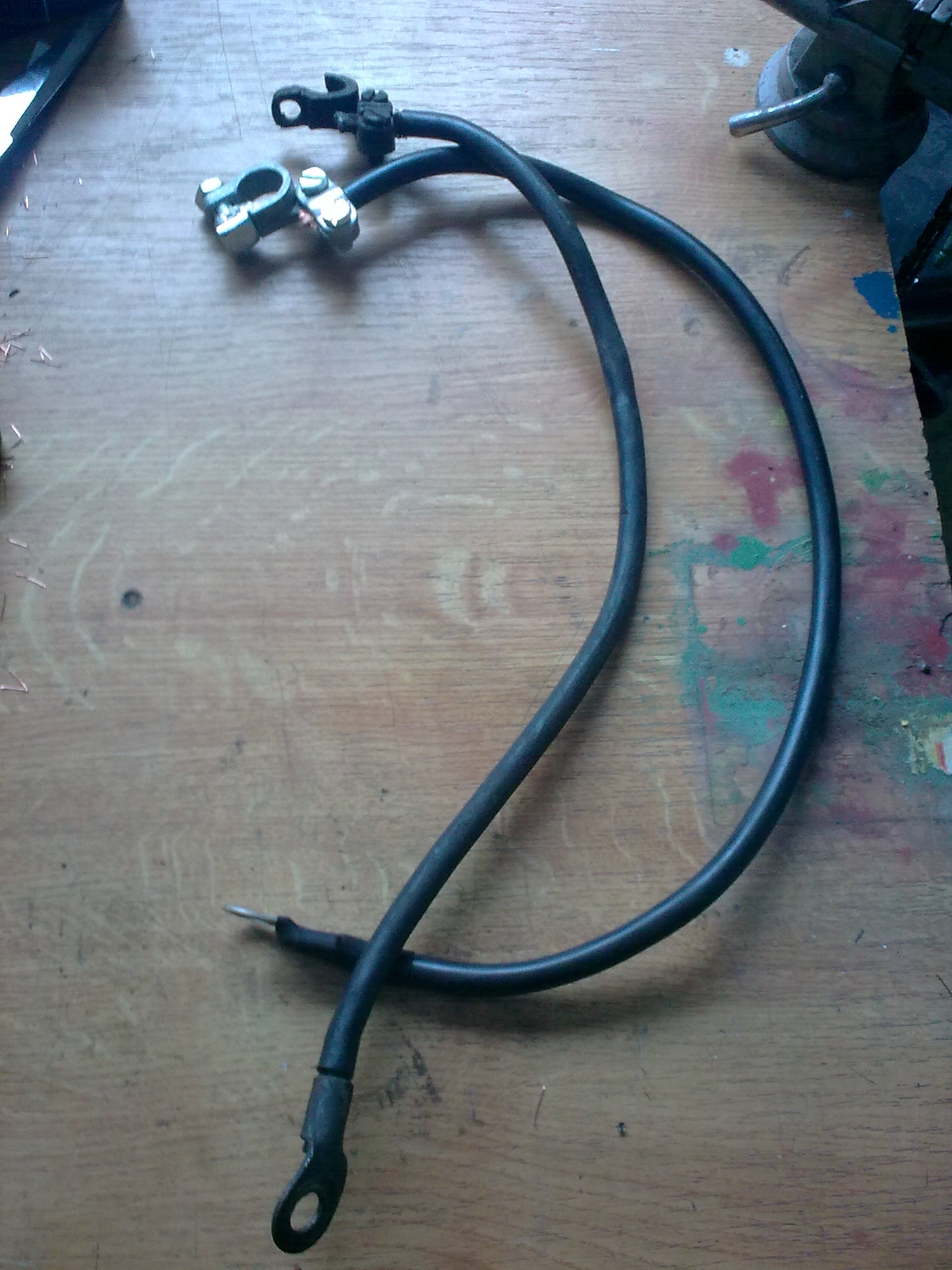 Im Bild sieht man beide Kabel. Beim alten war der Pluspol schon halb abgebrochen...