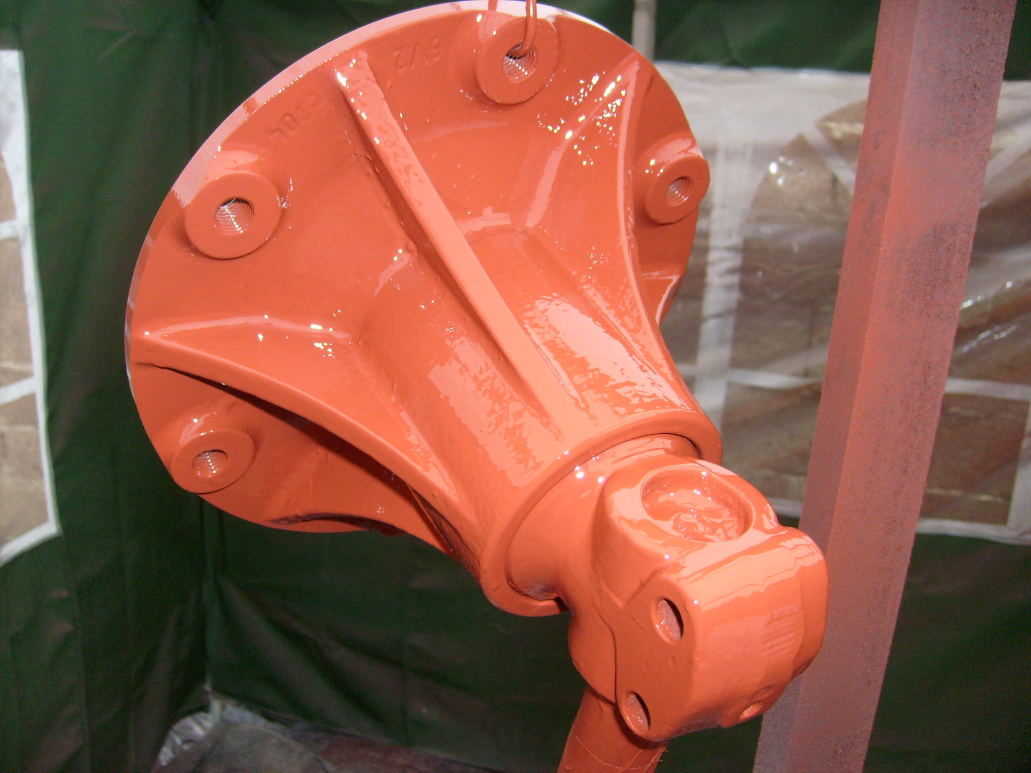 Die schon gezeigten grundierten Bulldogteile sind mitlerweile blau...Die Bohrungen für den Achsbolzen und andere Bohrungen wurden vorher abgeklebt, damit keine Farbe auf die Paßflächen kommen kann.