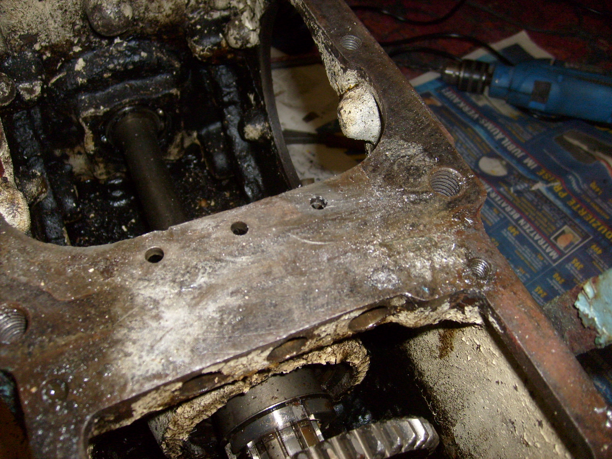 Im Bild sieht man wie "echte Fachleute" an der Schaltung herumgeschweißt haben. Warum? Ich vermute mal wegen Sperrung des Getriebes auf 6 km/h. Die Schweißperlen haben wir dann im Schlamm des Getriebes wiedergefunden, nebst abgebrochenem Zahn eines Zahnrades. Das hat ja super geklappt! :kloppe: