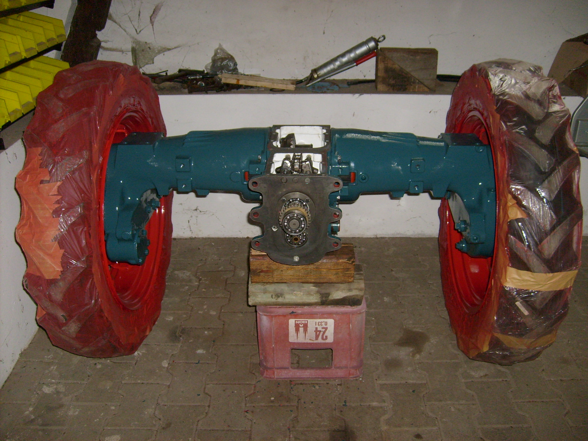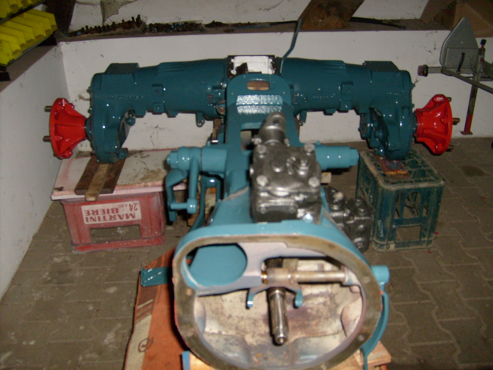 Wir fahren morgen mal nach Kassel zu dem Händler und schauen uns das Teil mal an. Bei der Kupplungsscheibe wurden neue Beläge aufgenietet. Der Lack der Vorderachse ist jetzt trocken und sie kann montiert werden. Dazu muss aber erst der Motor an das Kupplungsgehäuse geschraubt werden, weil die Vorderachse ja unter den Motor geschraubt wird. Wenn der Rumpf erst mal wieder steht ist das schlimmste überstanden...