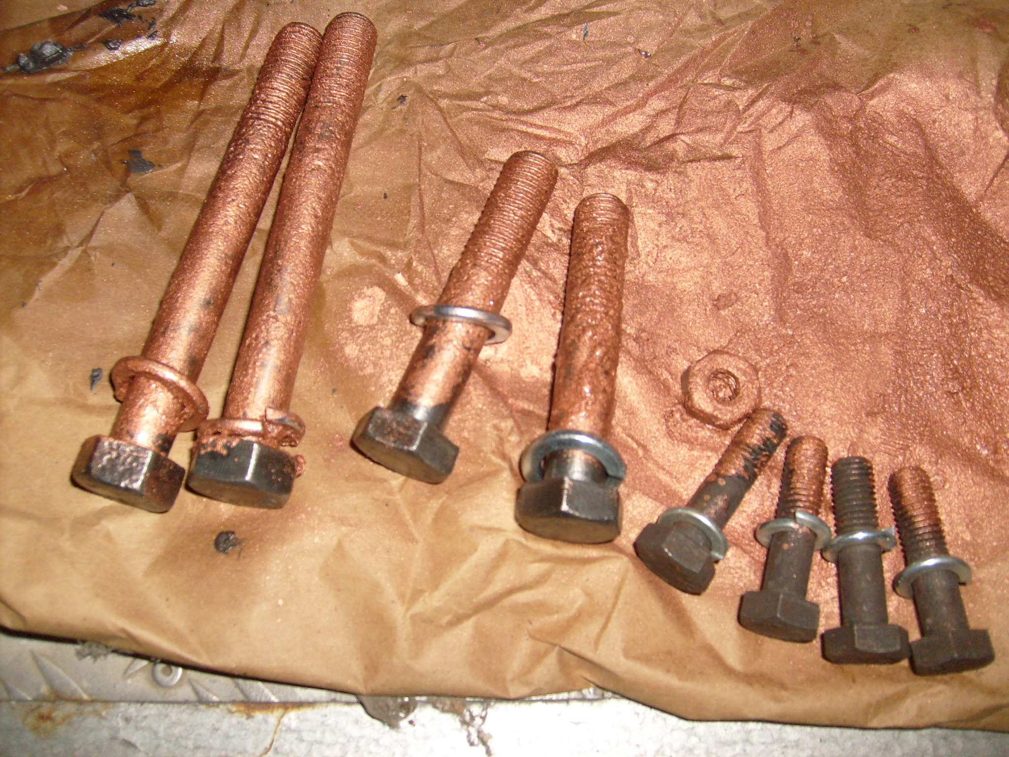 Der hintere Getriebedeckel wird am Getriebe zusammen mit der Sitzkonsole und der Hydraulik- Hubarmkonsole verschraubt. Dazu erst mal die alten Schrauben entrostet und schön mit Kupferpaste versehen...