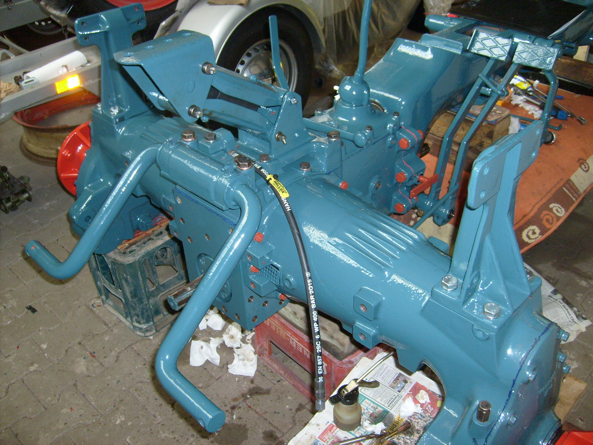 Beim D1306 der über eine Heckhydraulik verfügt sollte man daran denken vor der Montage des hinteren Verteilerstücks den rechten Hydraulikschlauch anzubringen, bevor man das Verteilerstück anschraubt. Man kommt sonst nicht mehr an die Verschraubung heran.