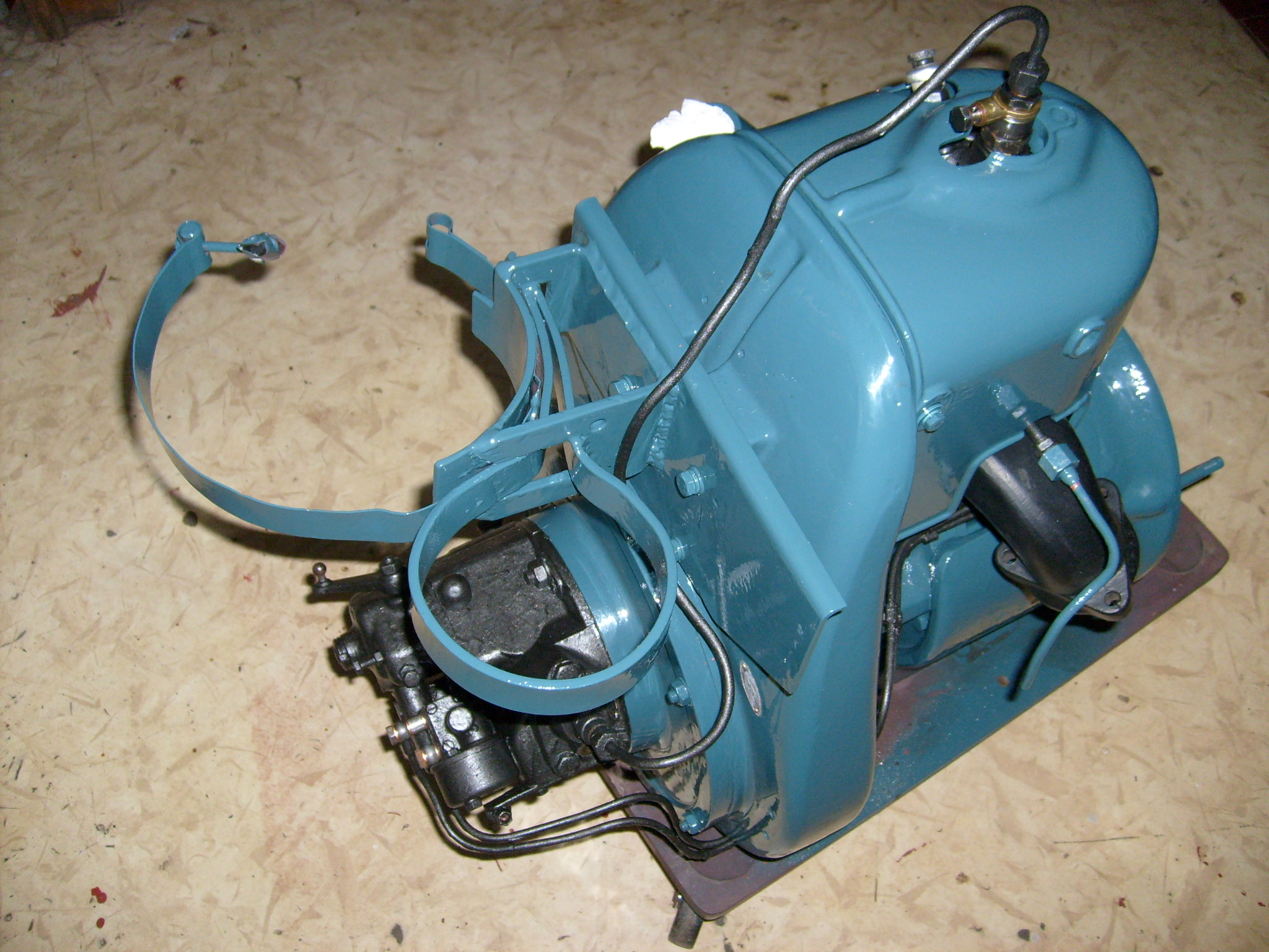 Zum Schluss kommt noch die Halterung für Luftfilter und Öltank dran, dann die Kratfstoffdruckleitung, das LT 85 Typenschild, ein wenig Schrauben Nachpinselei und schon ist der Motor fertig für die Montage am Schlepper.