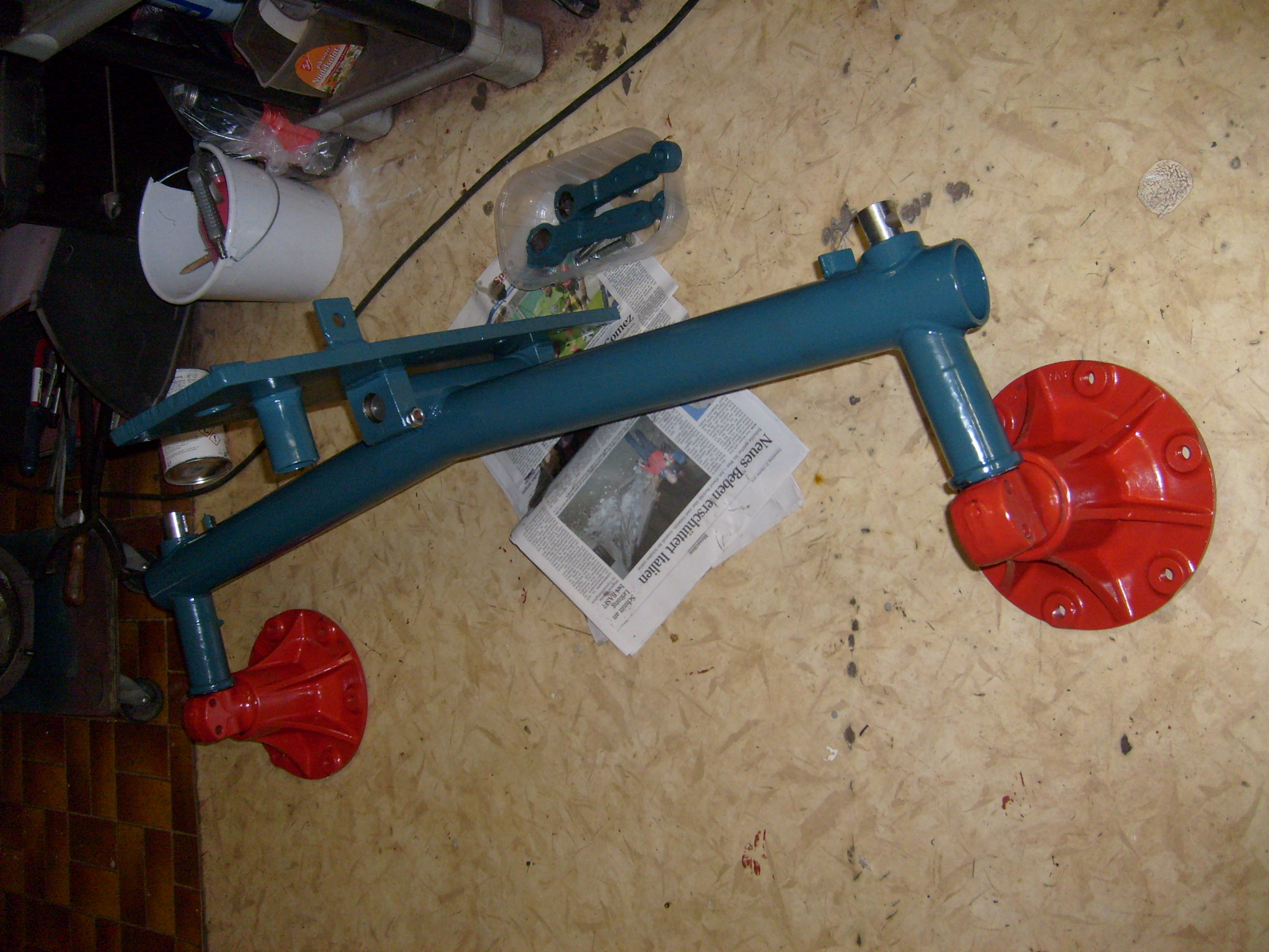 Nun konnte die Vorderachse zusammengesetzt werden. Die Spurhebel fehlen noch, da benötige ich noch zwei neue Passfedern.