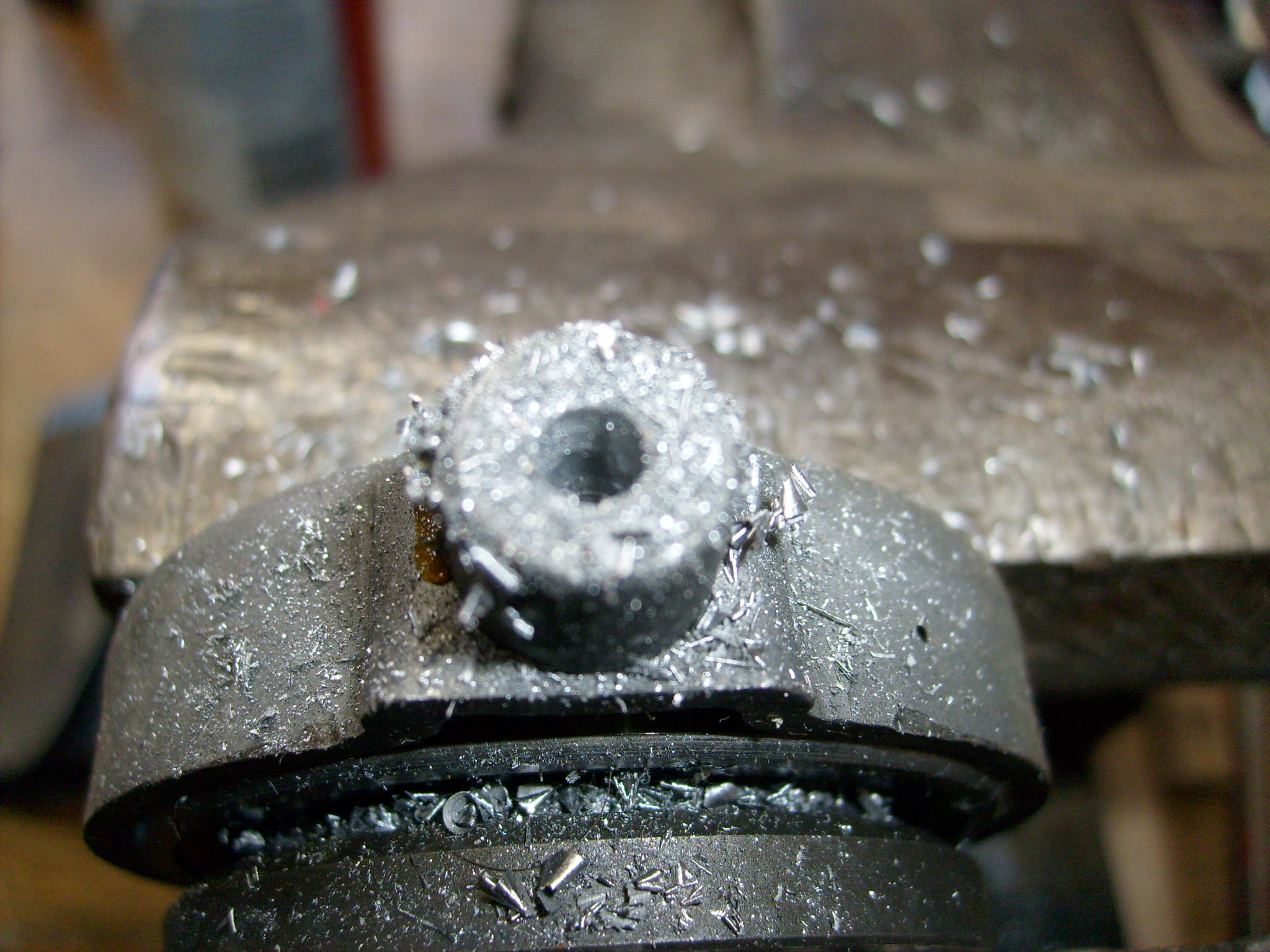 Bei noch genauerer Untersuchung stellte sich dann heraus, dass die Zapfen in dem Lagergehäuse eingenietet sind und die Bohrung mit 12 mm fast durch den Niet wanderte. Wie kann man einen Neet entfernen? Richtig. Durch ausbohren.