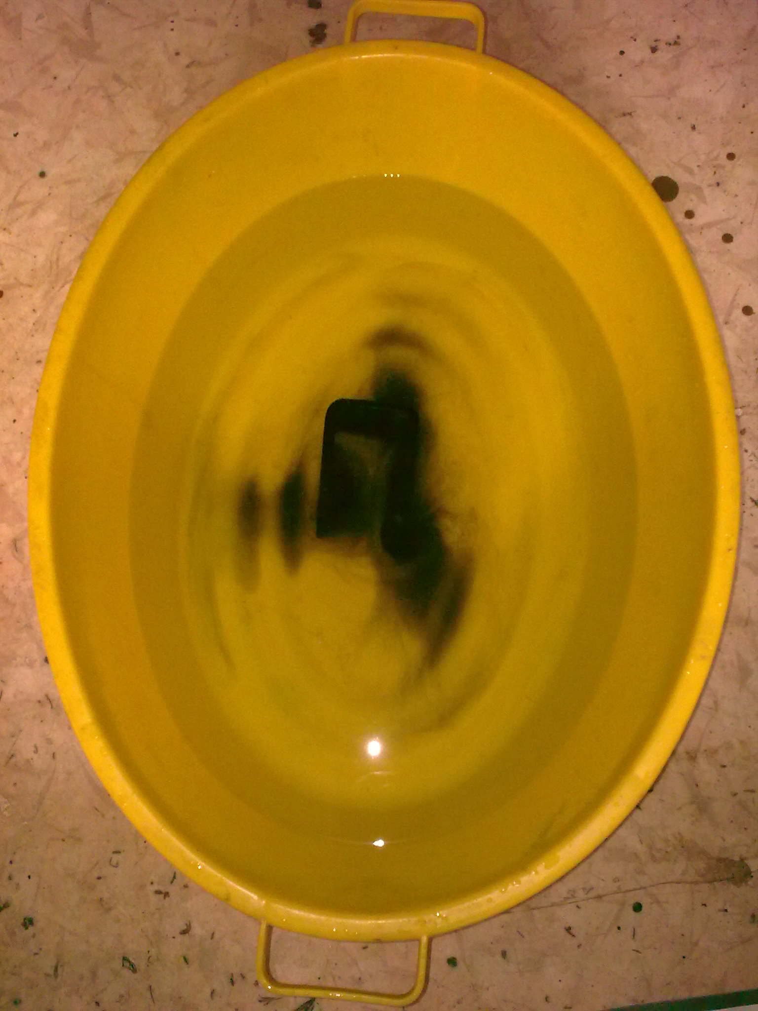 Der Rostumwandler wird mit warmen Wasser und weichem Pinsel abgewaschen. Zum abwaschen keine harten Gegenstände verwenden, damit die hauchdünne Beschichtung nicht zerstört wird. Daher auch nicht mehrere Teile in das Bad legen, damit sie nicht aneinander reiben können. Immer schön der Reihe nach mit Geduld...