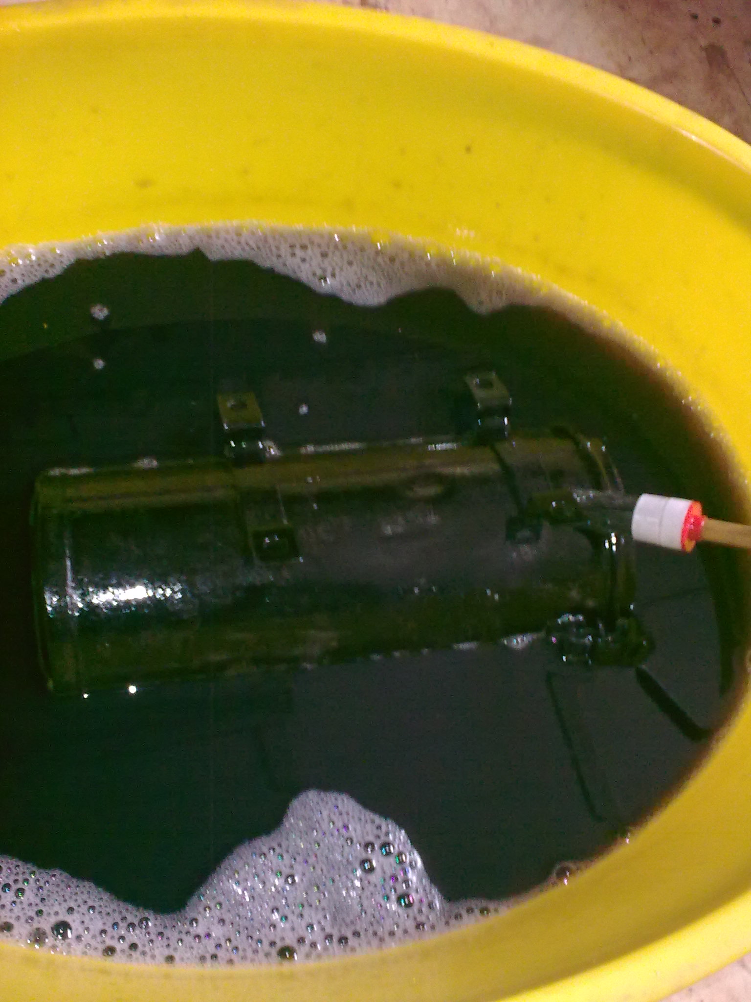 Für die Anbauteile die auf dem Bild oben sichtbar sind habe ich zum abwaschen beispielsweise 5 Stunden benötigt. Gut investierte Zeit... Nicht vergessen z.B. Einweghandschuhe dabei anzuziehen. Der Umwandler hält auf Haut fast so gut wie auf gerostetem Untergrund...