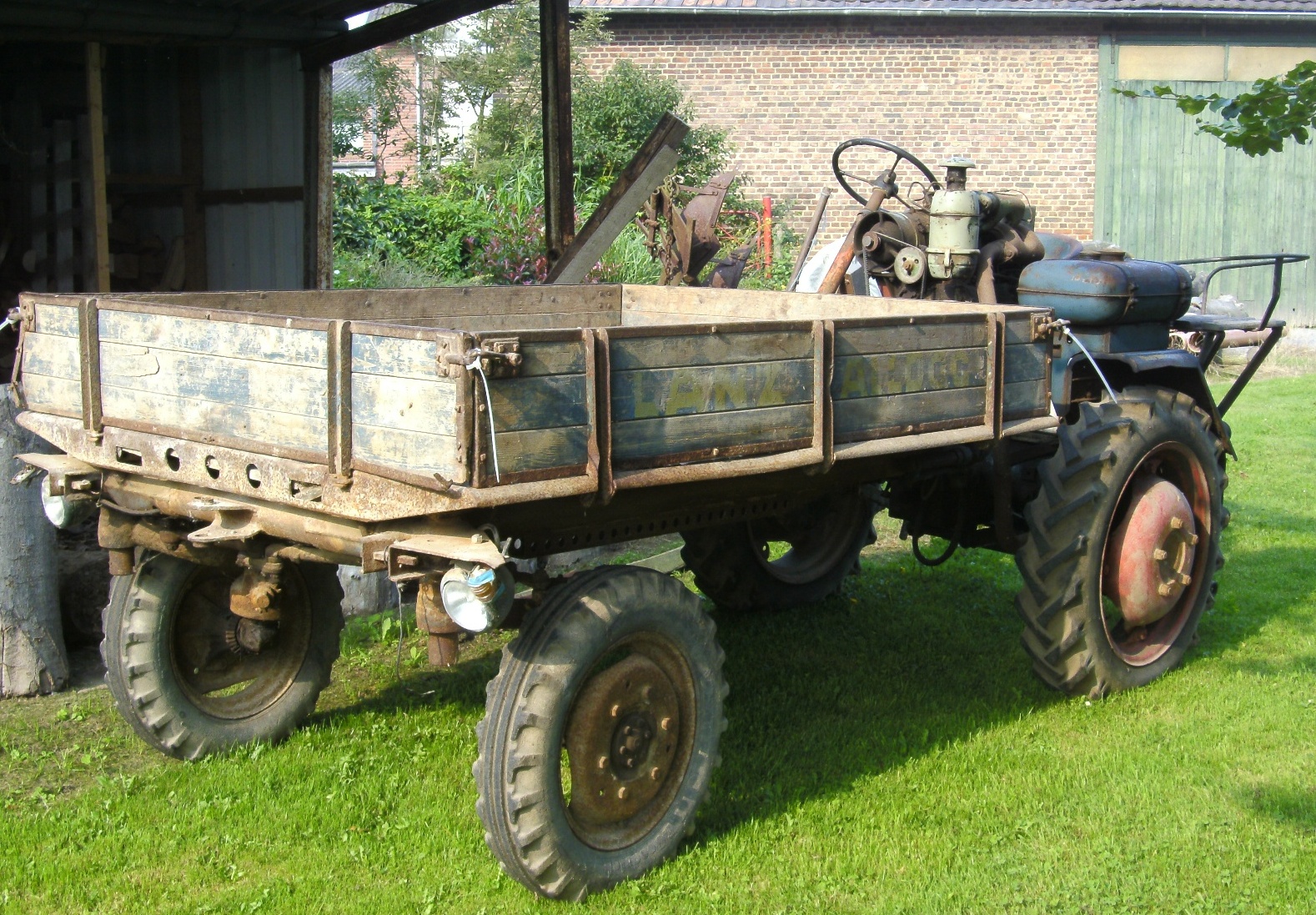 ich bin kein Fahrzeugnarr und kein Restaurationsfan, habe aber einen Lanz Alldog Geräteträger in Familienbesitz und verbinde viele Erinnerungen an eine schöne Kindheit damit. Leider ist er seit einigen Jahren nicht mehr fahrtüchtig und in keinem guten Zustand. Die Versuche in wieder an Liebhaber zu veräußern scheiterten bislang am fehlenden Typenschild des Fahrzeugs. Seltsamerweise ist der Motor grün (MWM, Baujahr 1965) und der Rest des Fahrzeugs blau. Somit ist der Motor scheinbar später verändert worden und der Geräteträger noch älter.