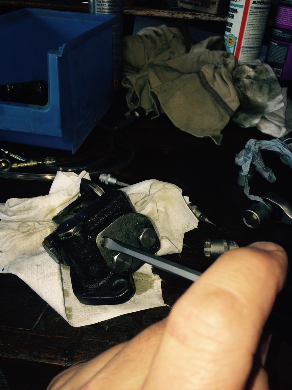 Beide oberen Hohlschrauben werden erst eingesteckt und angeschraubt, nachdem die jeweilige Leitung bei laufendem Motor durch kaum sichtbares Überlaufen anzeigt, dass keine Luftblasen mehr vorhanden sind.