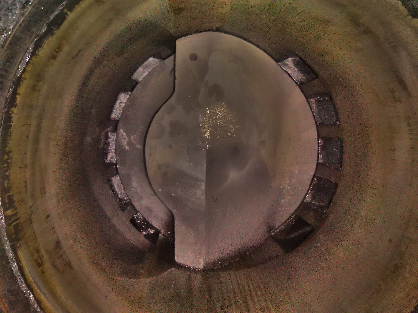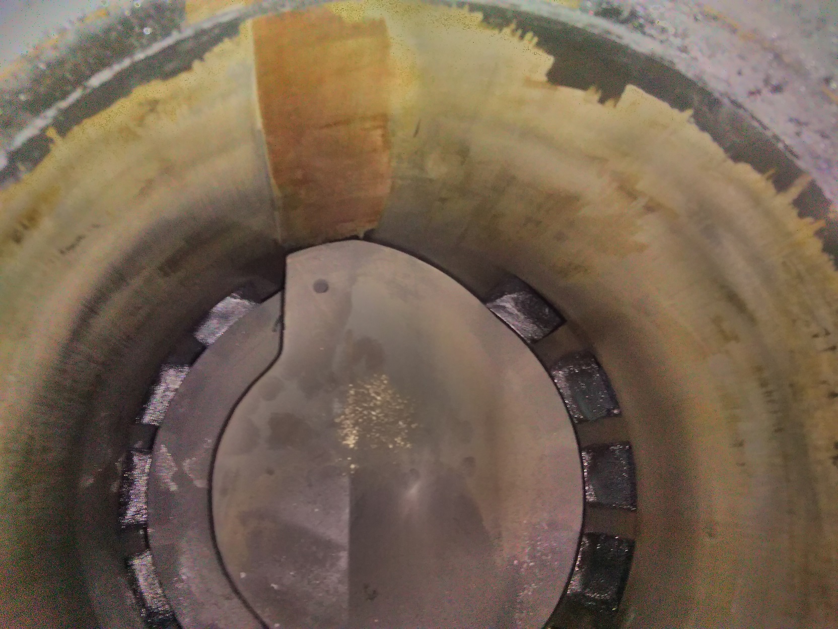 ...ohne den Ausbau des Kolbens kann man wohl nur Mutmaßungen treffen, was dieses 'Schadensbild' verursacht.