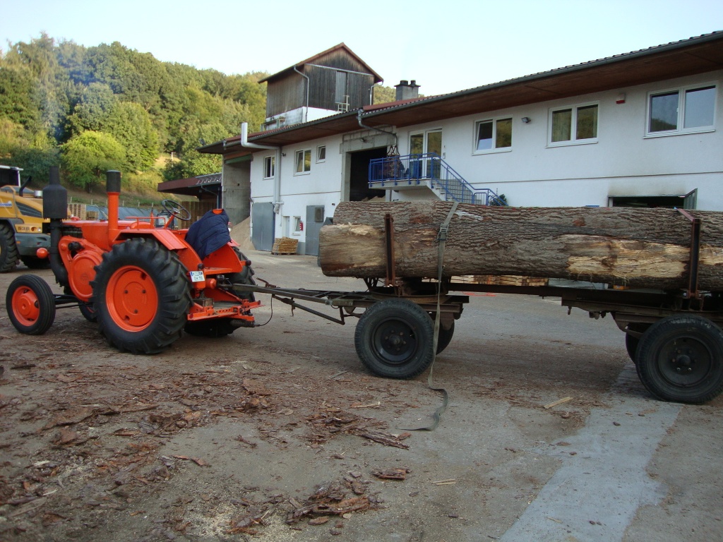 Habe heute auch mal wieder Einsatzbilder geknippst wie mein Argentinier ein paar Eichenstämme ins Sägewerk fahren durfte. Lektion "Gruppenschalten" war mal wieder angesagt - unsere Region ist doch etwas zu hügelig für eine Schnelle Gruppe + Anhänger :( Aber es mach trotzdem immer wieder Spaß