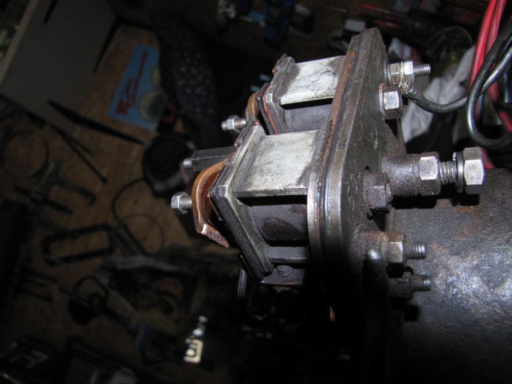 P.S.: Habe heute ,al ein paar Fotos gemacht. Das Problem mit dem Ausbohren ist das senkrechte Blech, welches genau unter dem Nietloch liegt. Nin schon am überlegen, ob ich da ein Stück wegdrehmeln kann und dann einfach eine Mutter unterlege.