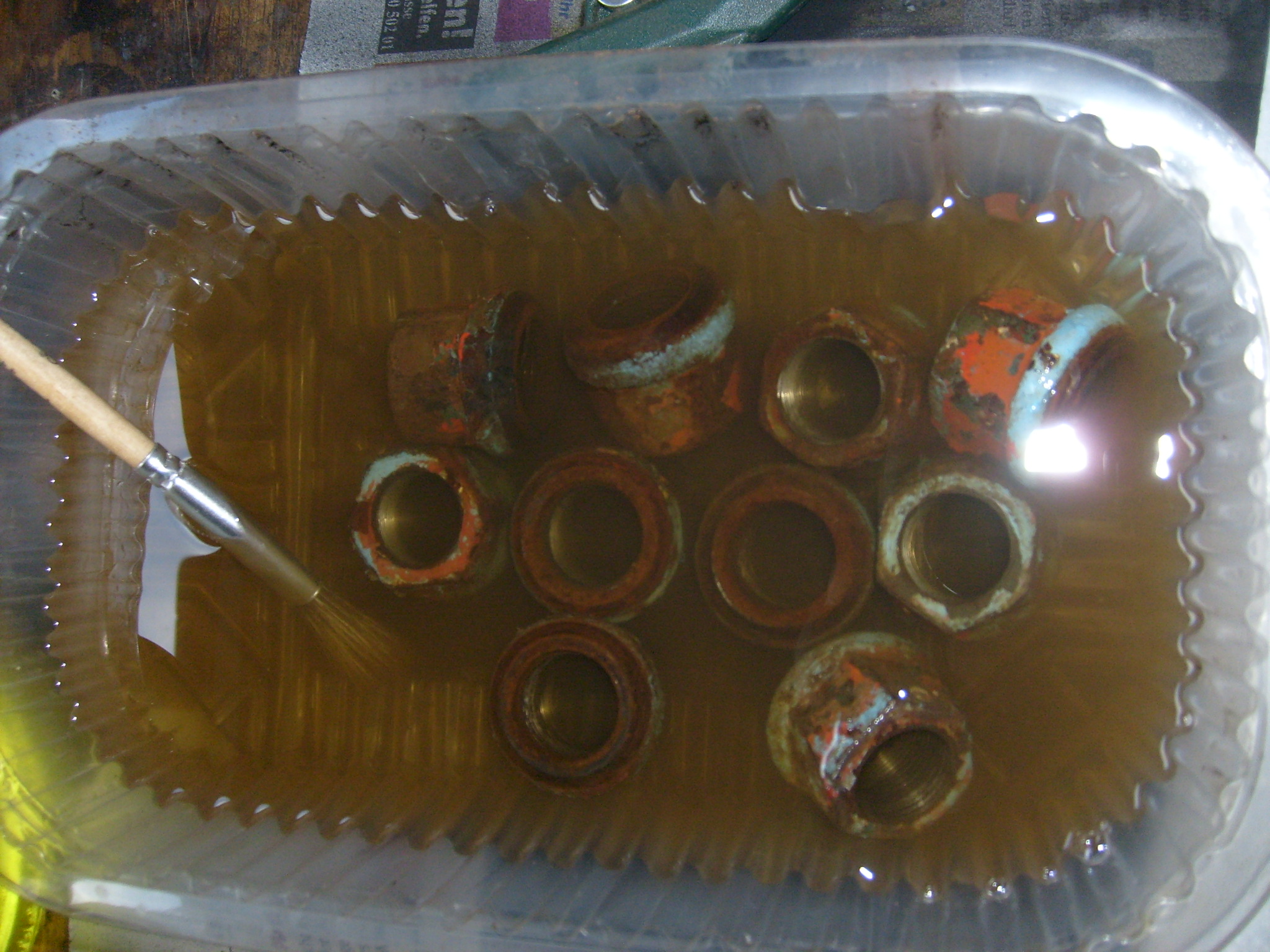 Wo man schon mal dabei ist haben wir gleich die Radmuttern entfettet und entrostet...