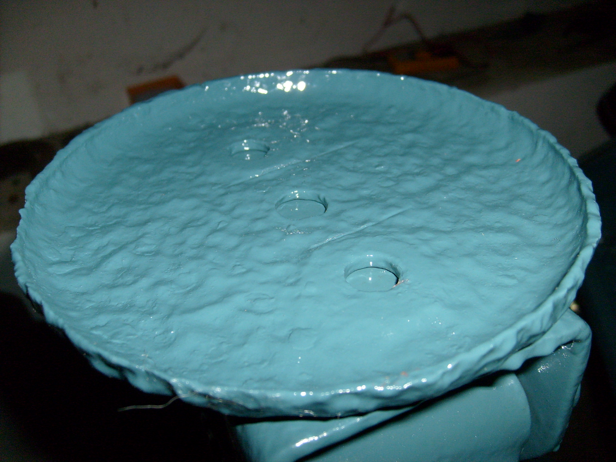 Den Sitz habe ich neu gekauft. Die Spannscheibe hätte ich auch gerne neu gekauft, war zu dem Zeitpunkt aber nirgendwo aufzutreiben. Also wurde die alte Spannscheibe wieder in Form gebracht. Die Mondlandschaft, äh, Patina, haben wir aber so gelassen, den abgefressenen Rand auch.