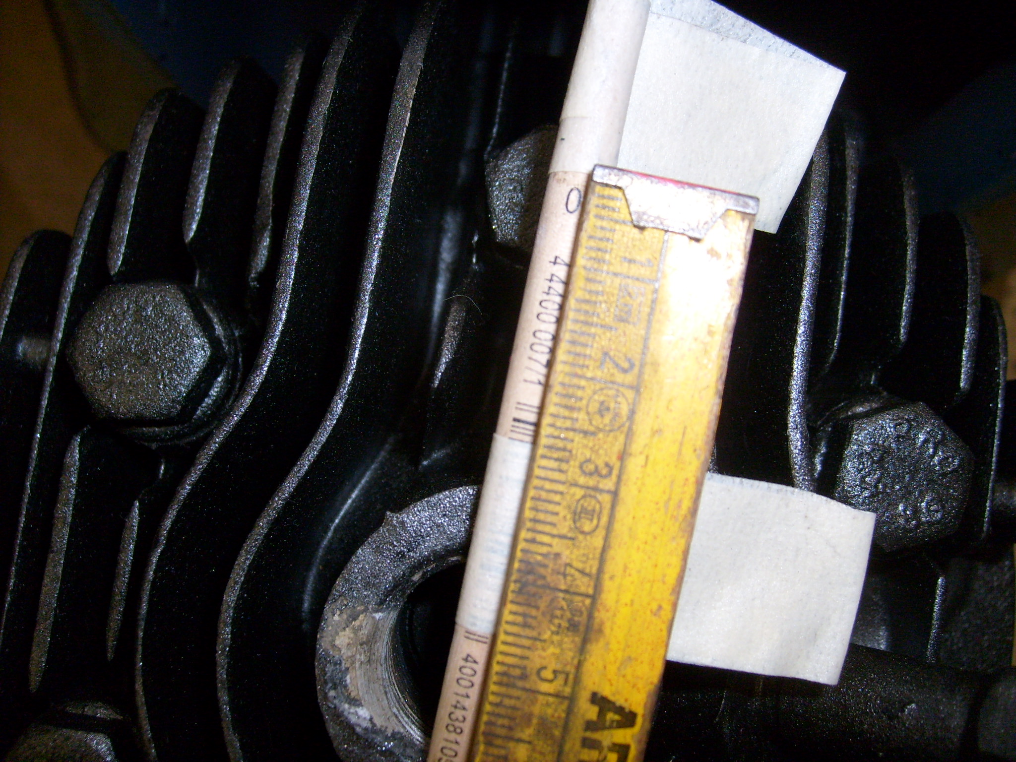 Bevor die Einspritzdüse montiert wird unbedingt darauf achten, ob ein Wärmeschutzplättchen eingelegt ist. Vor jeder Montage der Düse muss ein schon montiertes Plättchen wieder in Form gebracht werden, dass heißt ausbauen und die zum Brennraum hin eingedrückte Stelle durch die Düse muss wieder gerade geklopft oder auf einer Presse gedrückt werden. Nur so kann die Wärmeableitung zwischen Düse und Zylinderkopf optimal funktionieren, was bei diesem luftgekühlten Motor enorm wichtig ist. Zu meiner großen Überraschung, oder auch nicht, war in dem Zylinderkopf kein Wärmeschutzplättchen vorhanden. Es lag aber eine Unterlegescheibe drin, die im Außenrand exakt in die Düsenbohrung passte, aber innen war es eine 8 mm Bohrung und damit für die Funktion, die das eigentlich haben soll, ungeeignet. Natürlich war das wieder schön fest da drin. Wobei die Betonung auf "FEST!" liegt... :evil: Keine Chance das mit einem Drahthaken oder ähnlichem Werkzeug da raus zu bekommen. Klar, es gibt für alles Spezialwerkzeug, Innenauszieher usw. Aber so ein Werkzeug lohnt sich nicht wirklich für diese Einzelaktionen. Idee! Kältespray! Damit habe ich die U- Scheibe mal so richtig schön verwöhnt, 10 Sekunden sprühen, Drahthaken, schwupps, raus! :D