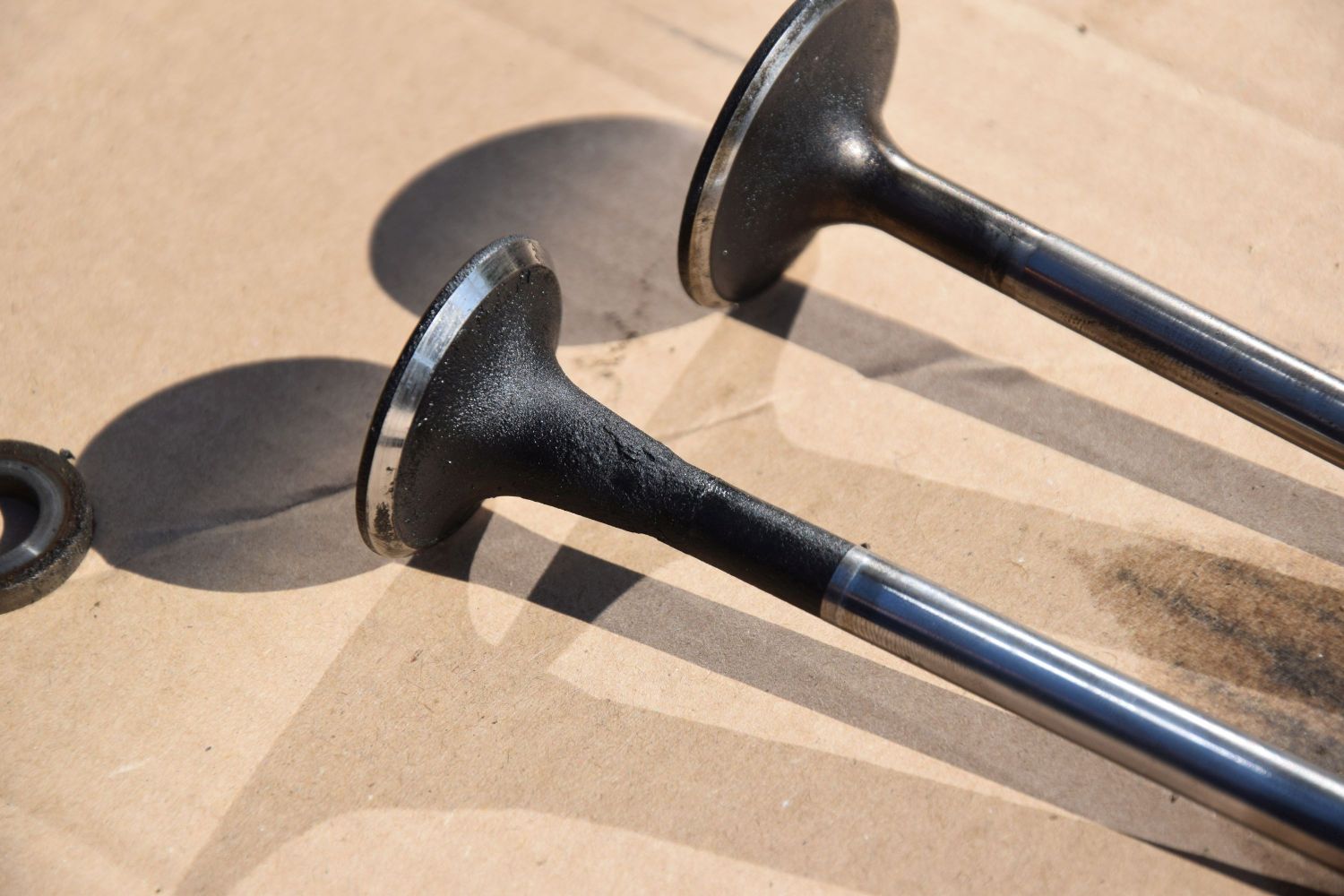 Ventile vor Reinigung. Vorne: Auslassventil, Hinten: Einlassventil