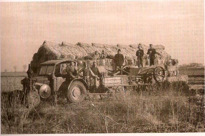 Ich vermute der Bulldog ist als Wehrmachtsschlepper da runter gekommen. Dafür spricht wohl das Bauerndach und der Auspuff nach oben. Komisch ist die Bereifung. Vielleicht ist er aber auch erst nach dem Krieg nach da unten verkauft worden. Das Foto stammt von 1950.