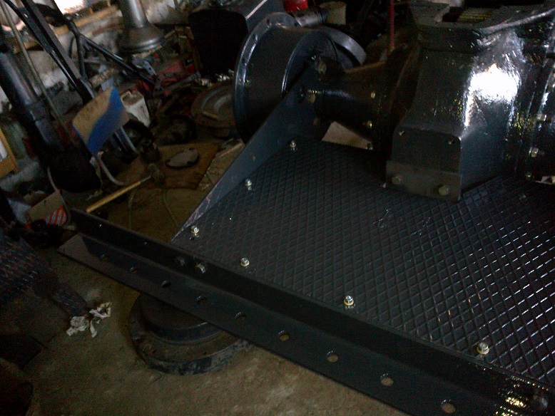 Derzeit habe ich die AHK, zusammen mit dem L-förmigen Blech, welches die Bodenplatte zusätzlich trägt, mit allen 4 Schrauben am Getriebegehäuse montiert.