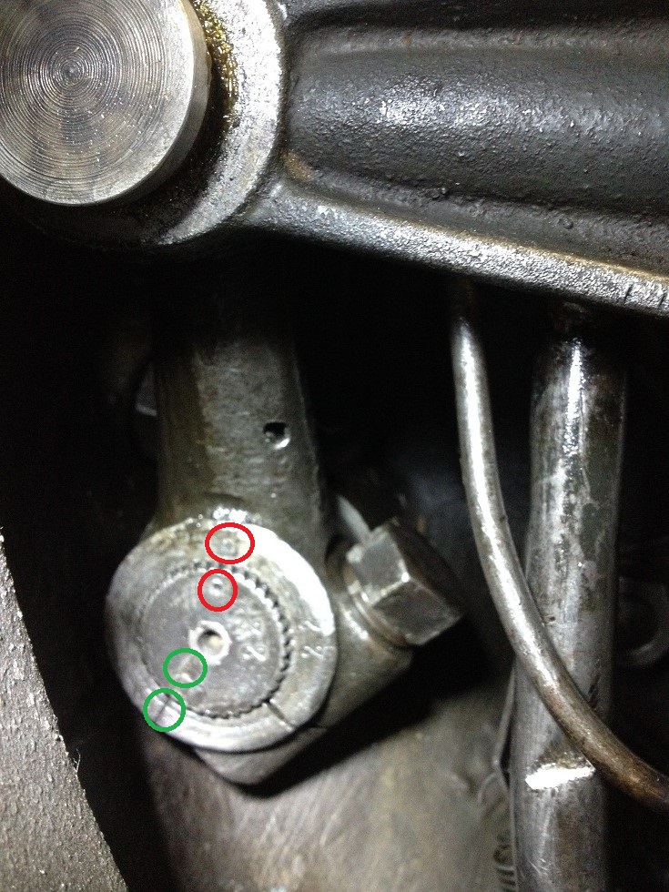 Die Markierungen auf dem Anlenkhebel und der Daumenwelle stimmen überein.
