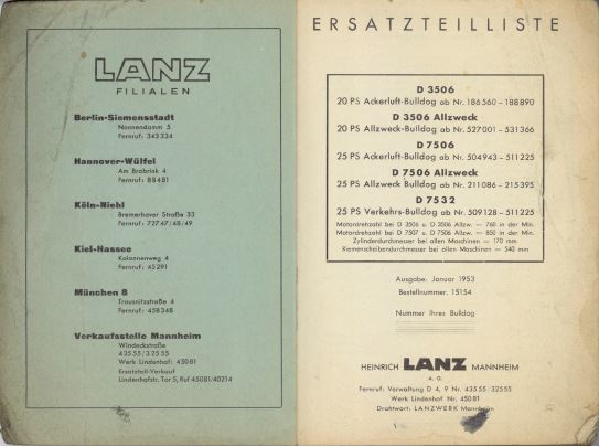 Nun bin ich auf der Suche nach Informationen wie Bilder, Schriftstücke usw.. über den Lanz D7532. Desweiteren suche ich eine Ersatzteilliste in der der D7532 mit beschrieben ist, gerne auch nur eine Kopie.
