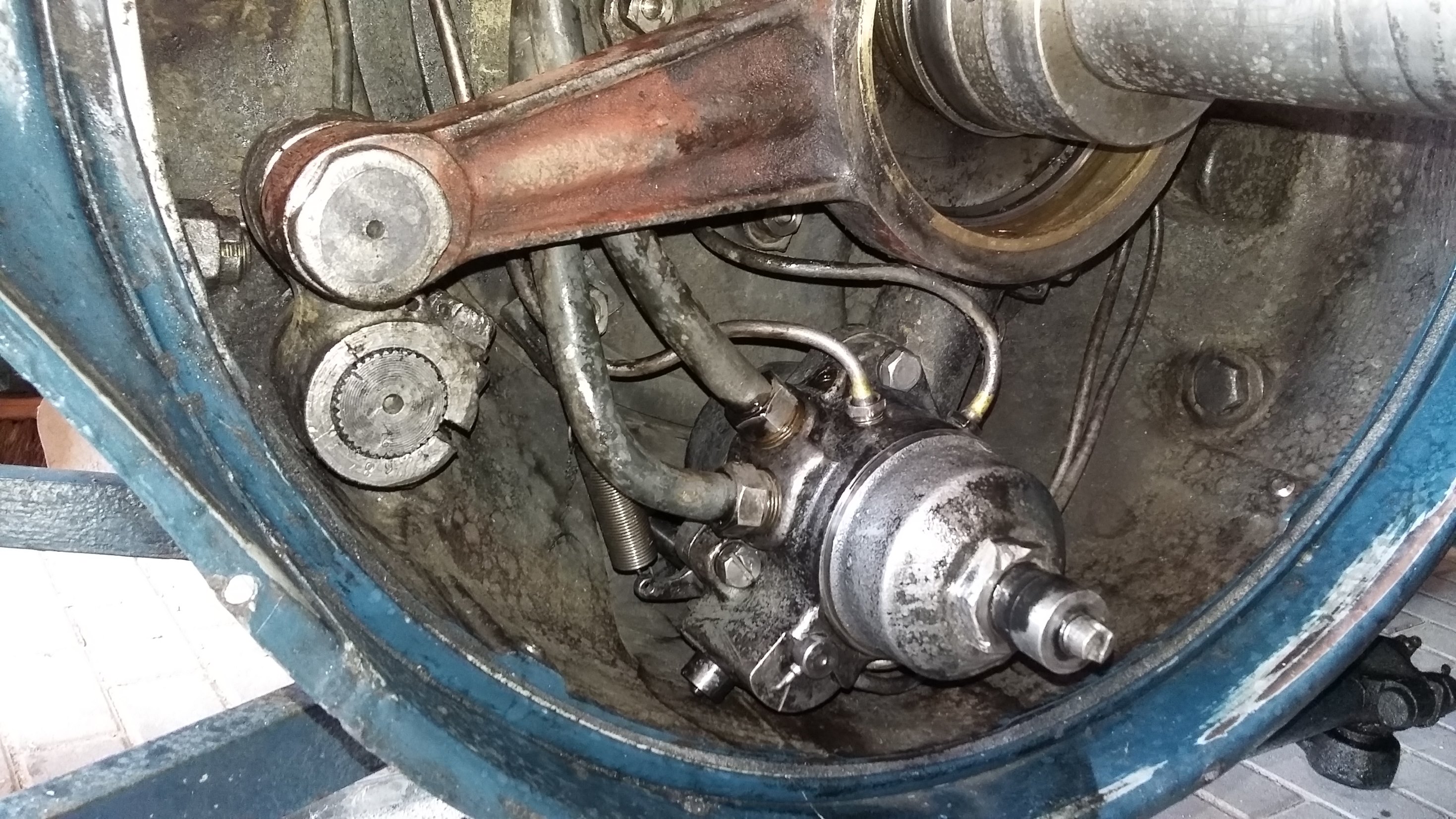 Schwungrad scheint leicht, also das der späten bzw. Nachkriegsmaschinen zu sein.