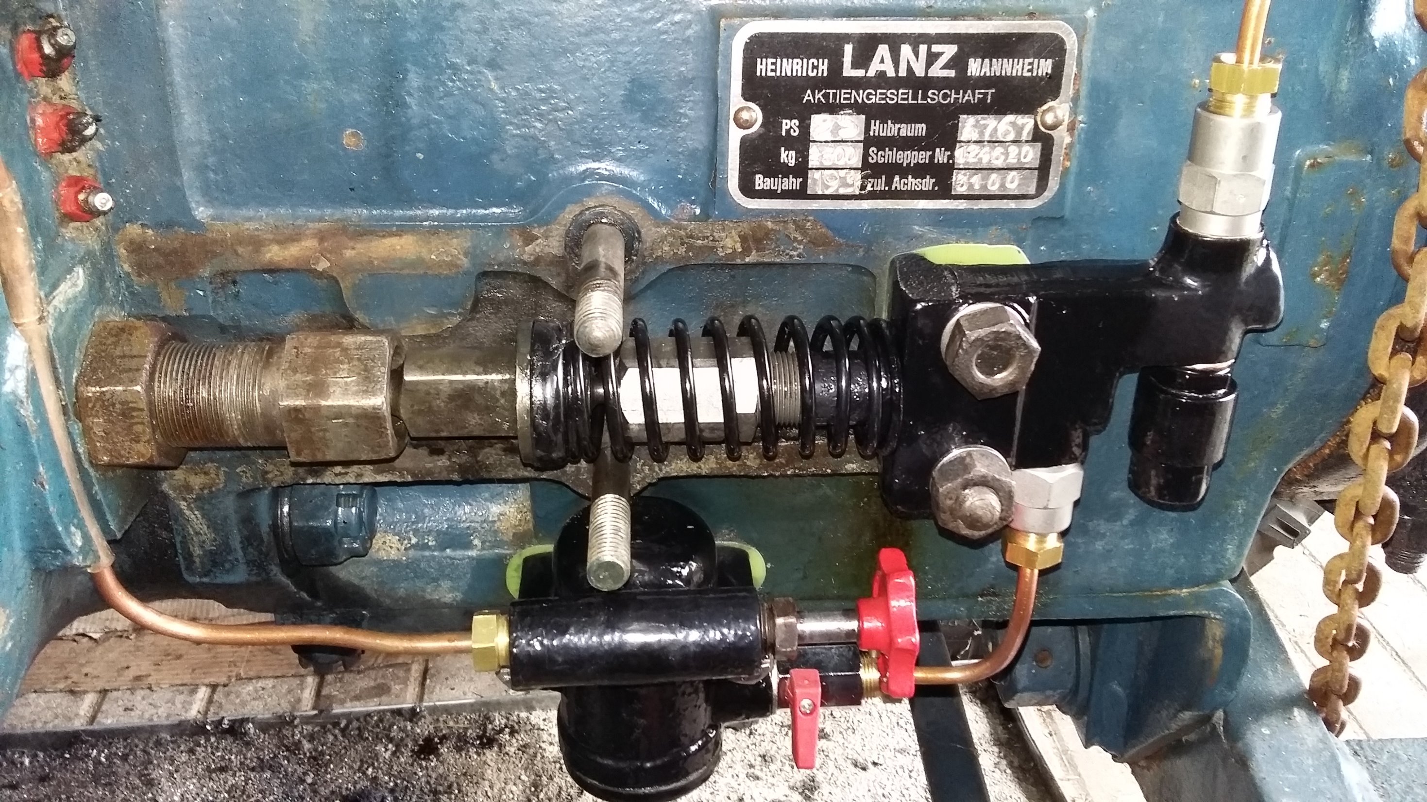 Aber : Anlenkhebel auf Daumenwelle scheint versetzt, da Markierungen nicht deckungsgleich stehen. Wenn diese Bauteile zugehörig zu diesem Traktor und auch zugeh. zueinander sind, sollten Marken zueinander 'passen'. Normalerweise kann man das nicht versetzt montieren, da sonst die Sicherungs- Klemmschraube nicht passt. Also mal checken.
