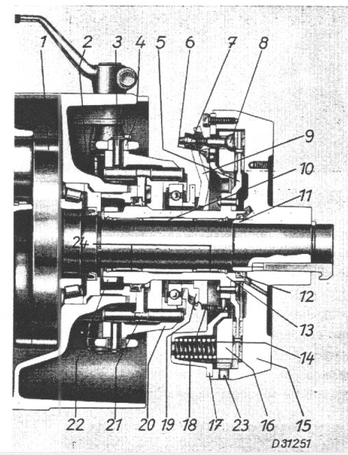Wie Du auf den Schnittzeichnungen sehen kannst, brauchst Du die komplette Kupplung mit Ausrückwelle, gekröpftem Kupplungshebel und der kompletten Ausrückvorrichtung einschließlich Drucklager.
