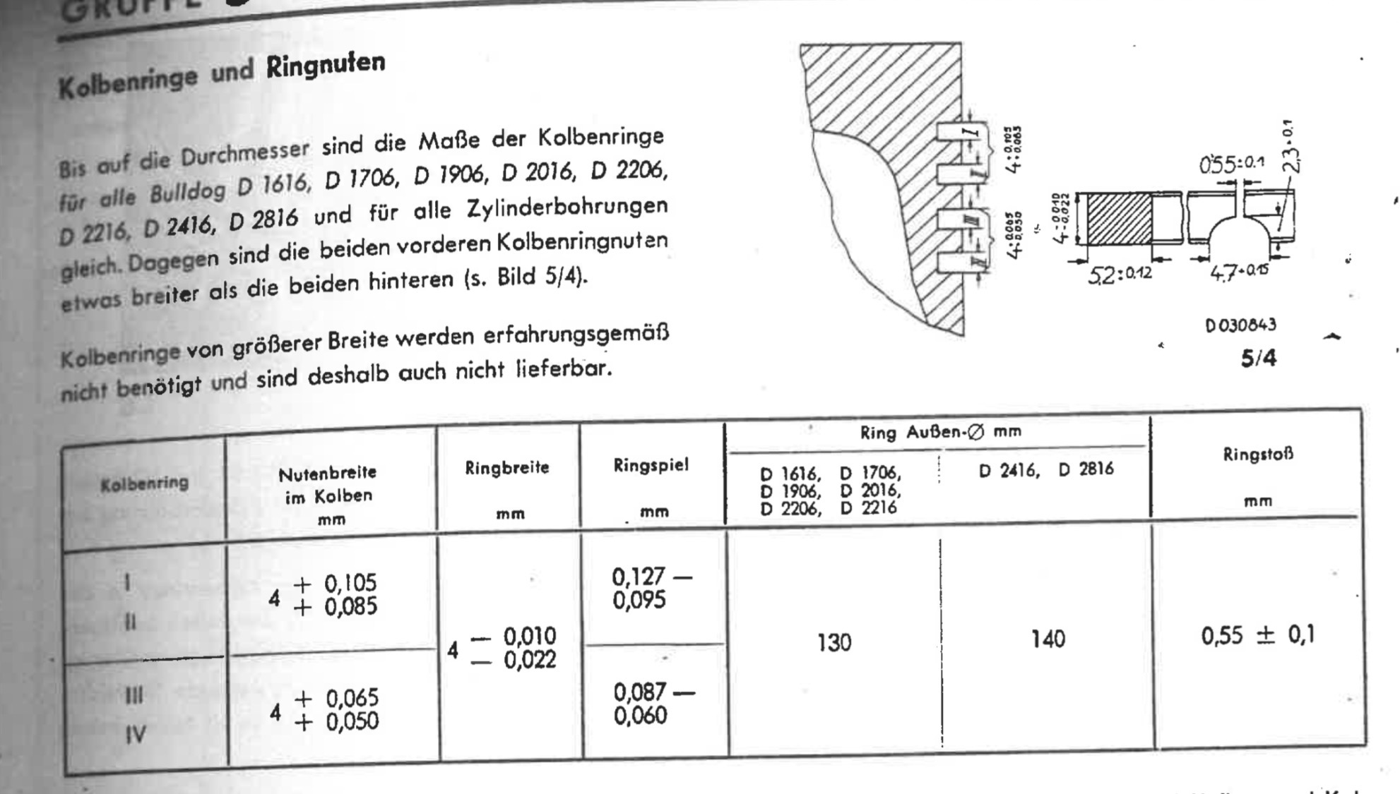 Wir restaurieren einen Lanz Bulldog D2016, der Zylinder wurde auf 131 mm aufgebohrt. Wie lauten die Richtlinien für das Kolbenringstoßspiel der Kolbenringe? Vielen Dank, Johan