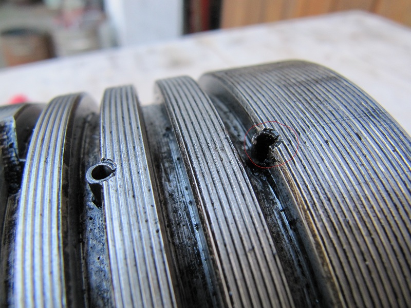 Da kann dann der neue Sicherungsstift sehr dicht an die alte Platzierung heran und ist auch wesentlich einfacher anzubringen. Auch die Aussparung am Ring scheint leichter einzuschleifen.