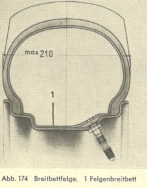 Das Problem ist nicht die Felgenbreite sondern die Form insgesamt. Tiefbettfelgen haben eine höhere Schulter die die abgesetzte Auflagefläche eines "normalen" Reifen überragt und ihn an den Flanken in die Zange nimmt.