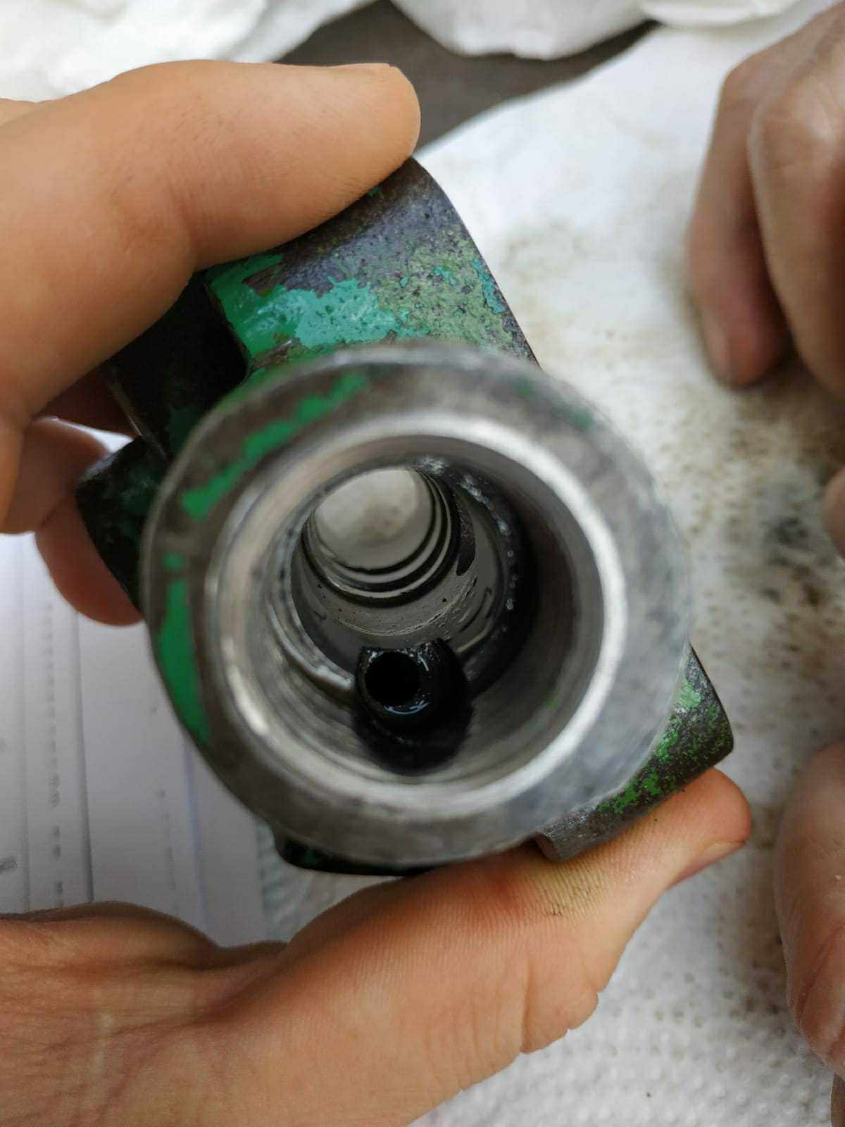 Wie schon erwähnt ist die Pumpe und damit auch deren Wellendichtring neu. Wenn die Hydraulik aber auf Stellung II oder III (dazu gleich mehr) die oberste Stellung erreicht arbeitet die Hydraulikpumpe weiter und das Überdruckventil des Steuergerätes löst nicht aus. Dadurch wird Hydrauliköl am Wellendichtring vorbei in den Raum des Pumpenantriebes zwischen der Hydraulikpumpe und dem Getriebe gedrückt. Der Raum füllt sich mit Öl und schon nach kurzer Zeit verliert der Bulldog das Hydrauliköl durch den Schmiernippel der dort angebracht ist. Momentan hoffe ich, dass kein Öl ins Getriebe gelangt ist.