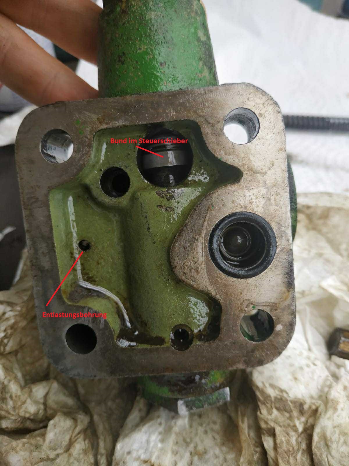 Kurz zum aktuellen Stand:im Verlauf des letzten Jahres wurde der Hydraulikblock und das Steuerventil (bis auf das Überdruckventil) zerlegt und die Dichtungen erneuert. Nachdem die Hydraulik danach immer noch kaum Kraft beim Heben hatte hat der Bulldog dieses Frühjahr eine neue Hydraulikpumpe bekommen. Verbaut ist eine vom Getriebe angetriebene Pumpe, mit der er jetzt sehr gut hebt. Das Problem ist jedoch, dass das Steuerventil bei Überdruck nicht abschält.