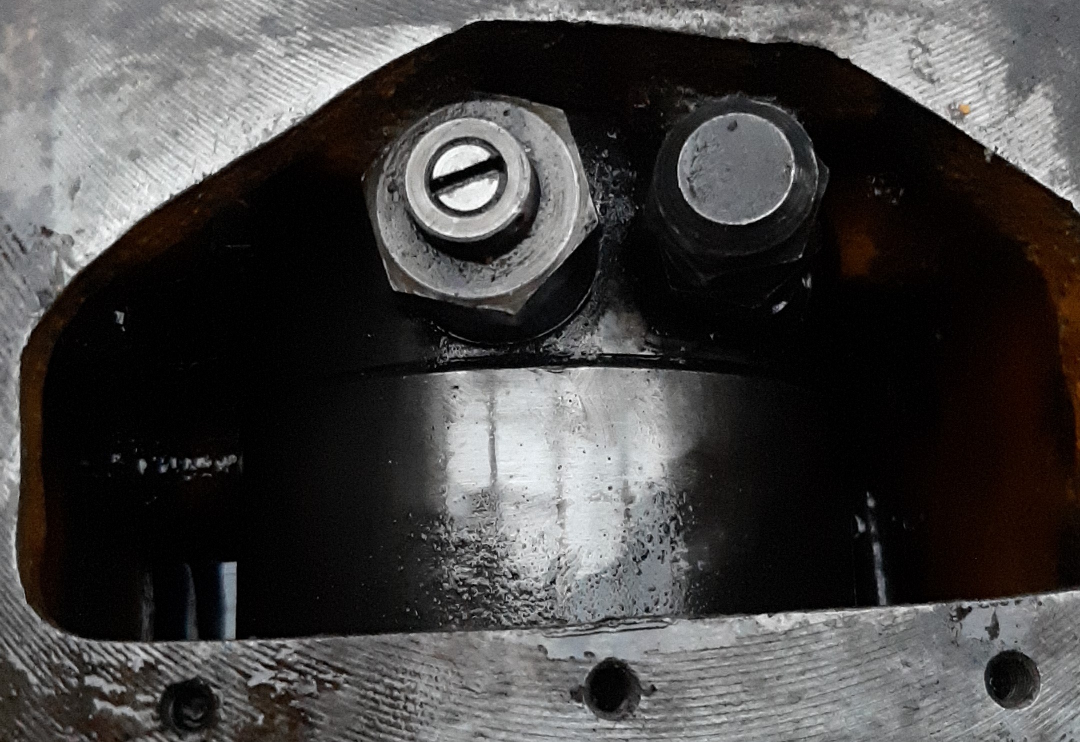 Wenn man oben hineinschaut, sind zwei Schrauben zu sehen.