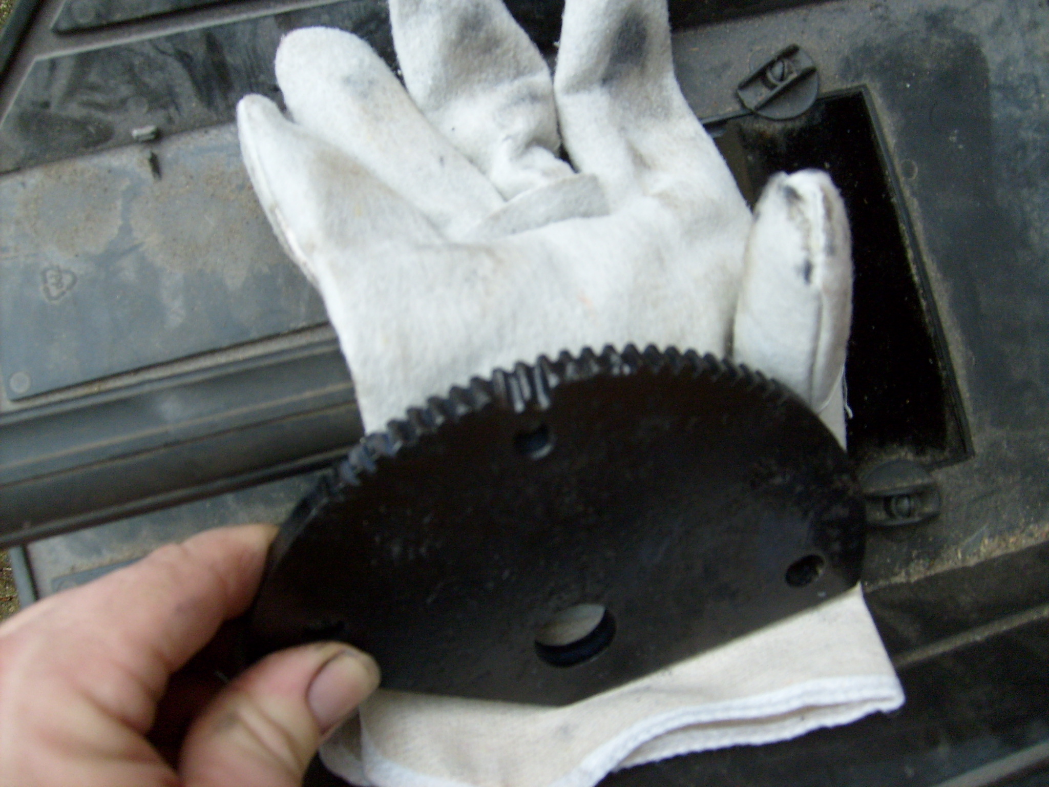 Nun wurde die entsprechende Stelle aufgeschweißt. Dabei auch gleich einige andere Zähne, wo seitlich etwas ausgebrochen oder abgenutzt war.