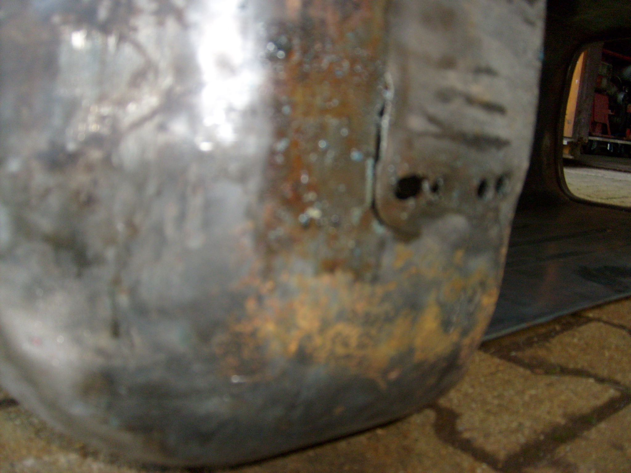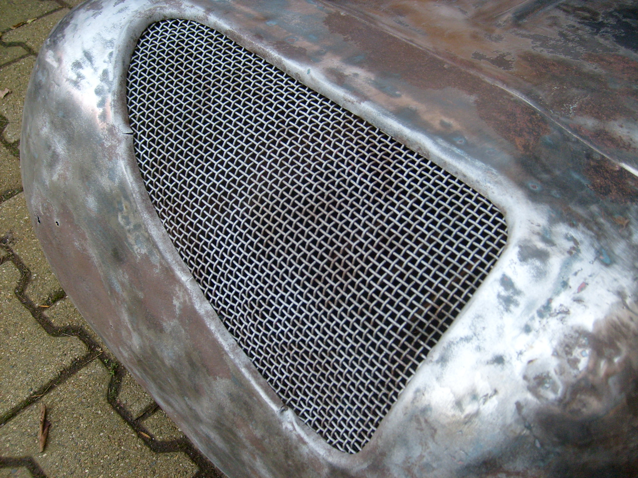 Was wurde noch lackiert? Der Lenkhebel unter dem Lenkgetriebe und die ominöse Platte aus Holz (Pressspan), die auf der Motorhaubeninnenseite angeschraubt war. Armaturentafel und Werkzeugkiste sind schon seit vier Tagen mit Rostkonverter gepinselt und warten auf eine Ladung Grundierung, damit sie anschließend gespachtelt werden können.