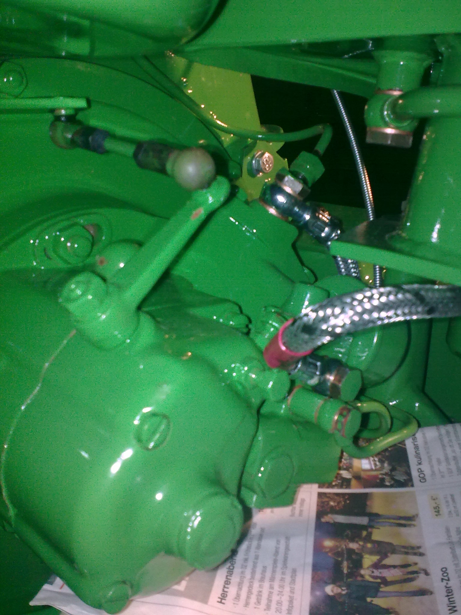 Hier ein Blick in den Maschinenraum. Regler mit lastabhängiger Ölpumpe... Die Zeitung dient der Kontrolle etwaiger Leckagen. Das stellt sich dann morgen heraus...
