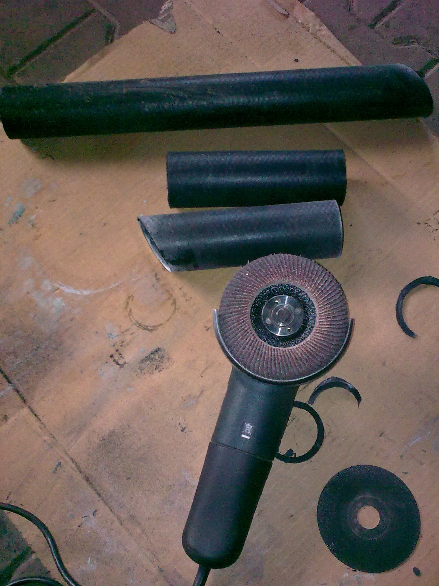Damit die Luft auch dort ankommt wo sie hin soll, baute ich mir aus einem vom Innendurchmesser her passenden Kühlerschlauch. Jeder TWN- Besitzer kennt das Problem mit den originalen Luftansaugschläuchen. Es gibt keinen der nicht irgendwie eingerissen oder stark porös ist. Neue und passende Schläuche sind nicht aufzutreiben. Der Kühlerschlauch ist relativ dickwandig und "steif". Man bekommt ihn zwar auf den Stutzen von Krümmer und Luftfilter aufgesteckt, dann bildet sich in der Mitte des Schlauchs aber ein Knick, der die Luftführung versperrt. Jetzt habe ich das erst mal provisorisch so gemacht, dass der Schlauch auf der Seite des Luftfilteranschlusses ca. 45 Grad schräg abgeflext wurde. Damit verringert sich die Spannung ungemein. Der Schlauch dichtet sehr gut an beiden Stutzen ab, was man bei verschlissenen original Schläuchen nicht unbedingt behaupten kann. Nur oben steht er etwas ab. Davon ein Bild später.