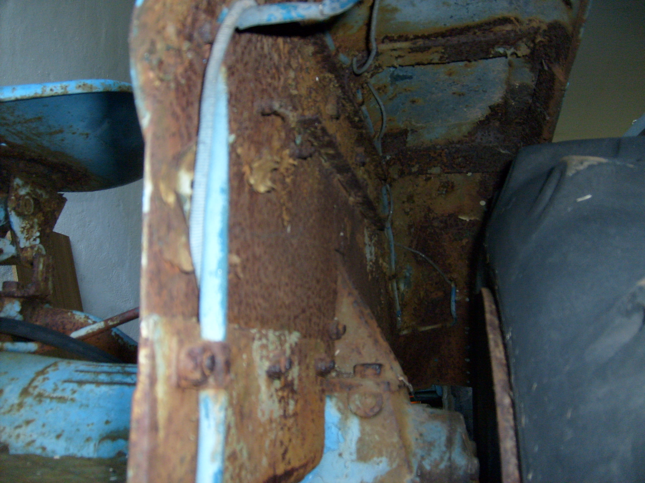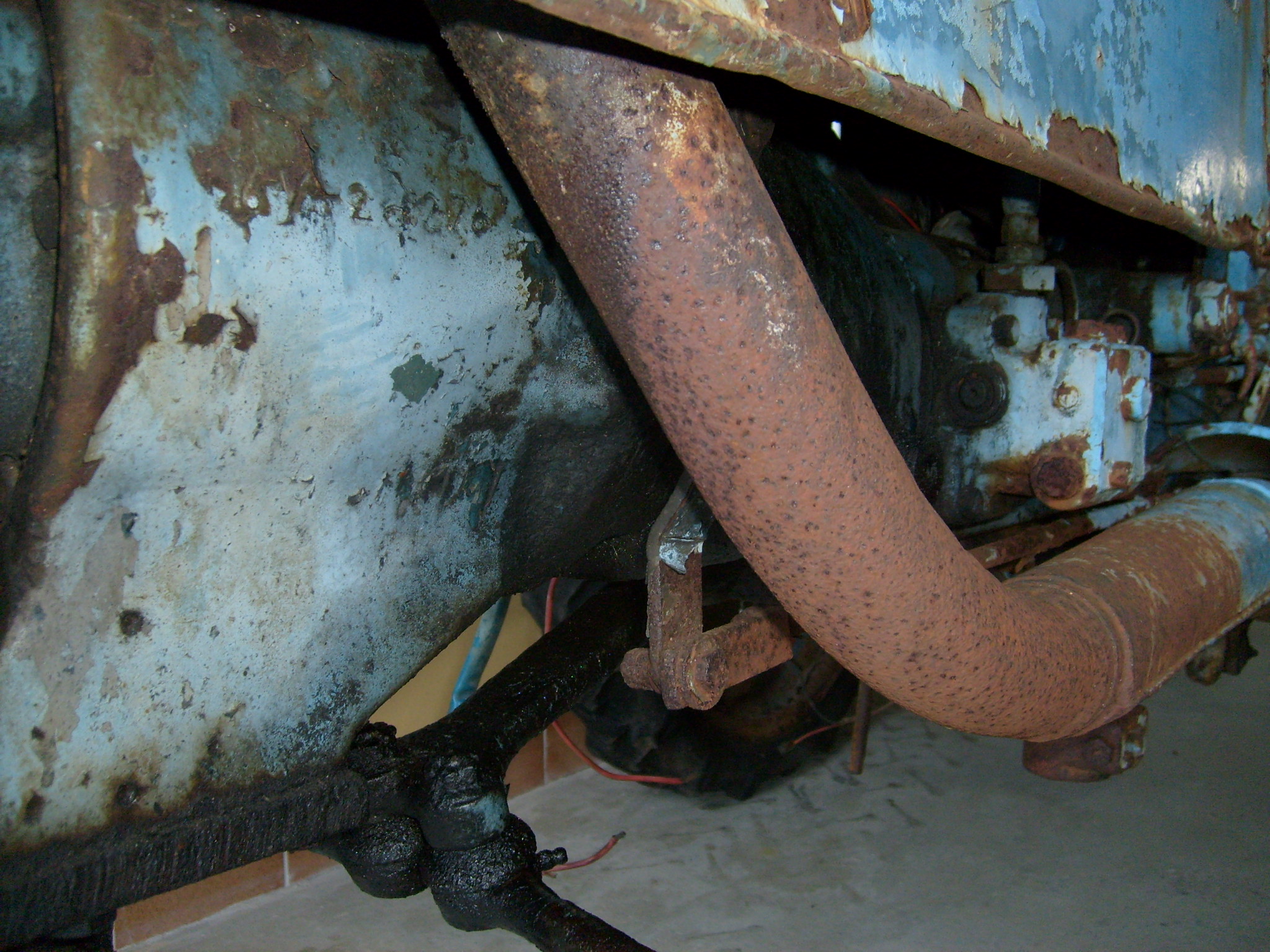 Heute mal einen Blick auf die schön patinierte Hinterradkotflügel Innenseite. Damit das nicht vollends durchrostet, werde ich hier mit Rostumwandler arbeiten müssen. Dadurch wird sich das Blech, bzw. der Rost, schwarz einfärben. Auf diesen starken Rostbefall außschließlich Wachs, Leinöl, Leinölfirnis oder ähnliches aufzutragen, halte ich für nicht ausreichend. Vielleicht käme noch Fluid Film AS in Betracht, mit dem ich sehr gute Erfahrungen im PKW Bereich gemacht habe. Mal schaun....