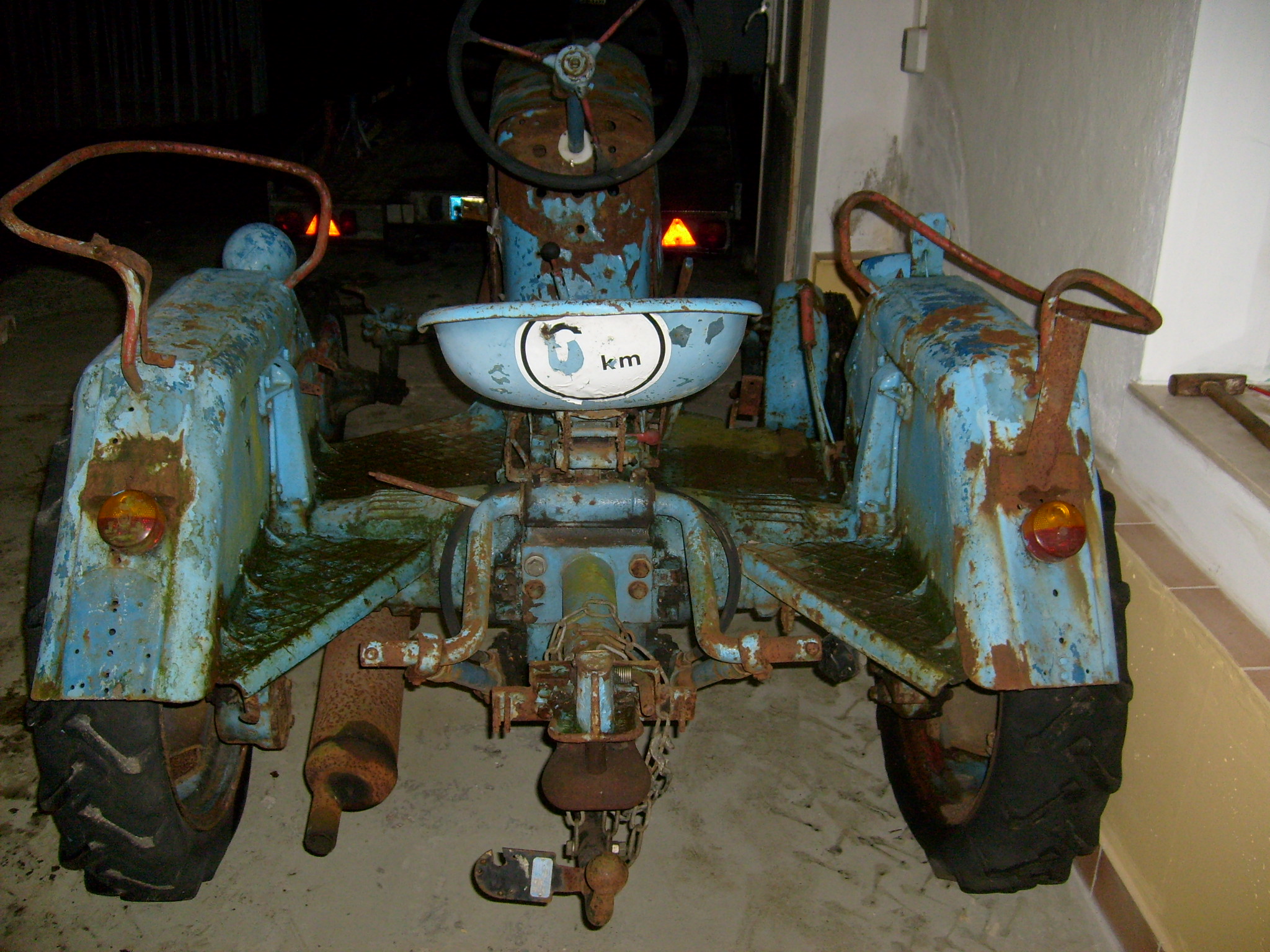 Bevor ich mit dem Schlepper am Strassenverkehr teilnehme, muss ich den alten 6 km/h Aufkleber, so leid es mir auch tut, gegen einen neuen, gut lesbaren ersetzen.