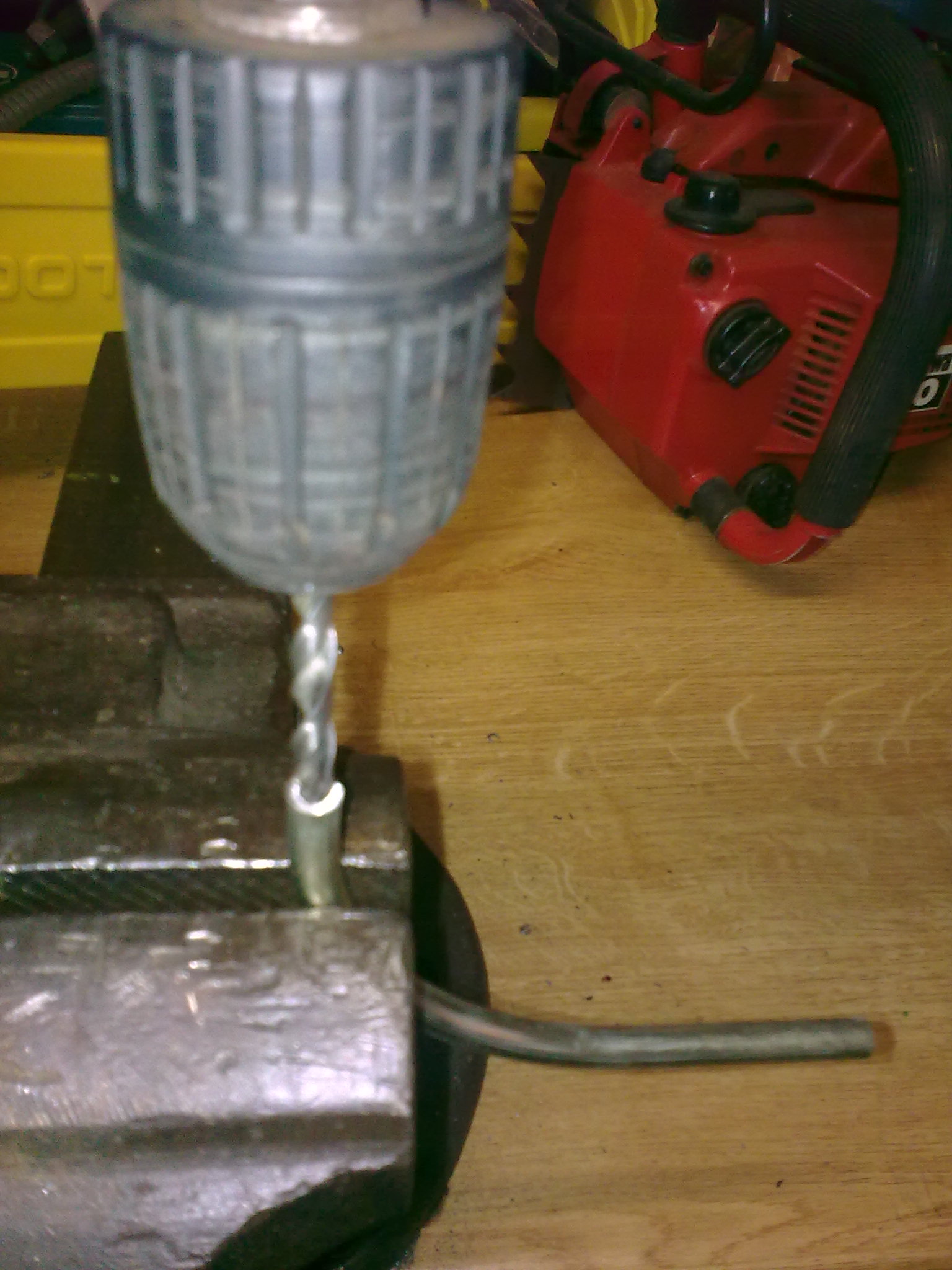Im dritten Schritt wird das Röhrchen wieder auf einer Seite 6mm aufgebohrt, der Schmiernippel eingesteckt und beide Komponenten miteinander verschweißt.