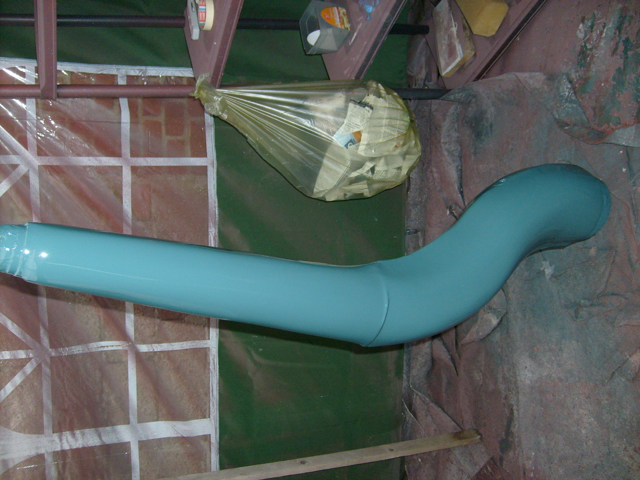 Heute soll der Auspuff grundiert werden, der Feinspachtelauftrag bei den Kotflügeln erfolgen und die Motorhaube für ein erneutes Feinspachteln vorbereitet werden. Soweit die Theorie. Mal gucken wie weit wir kommen...